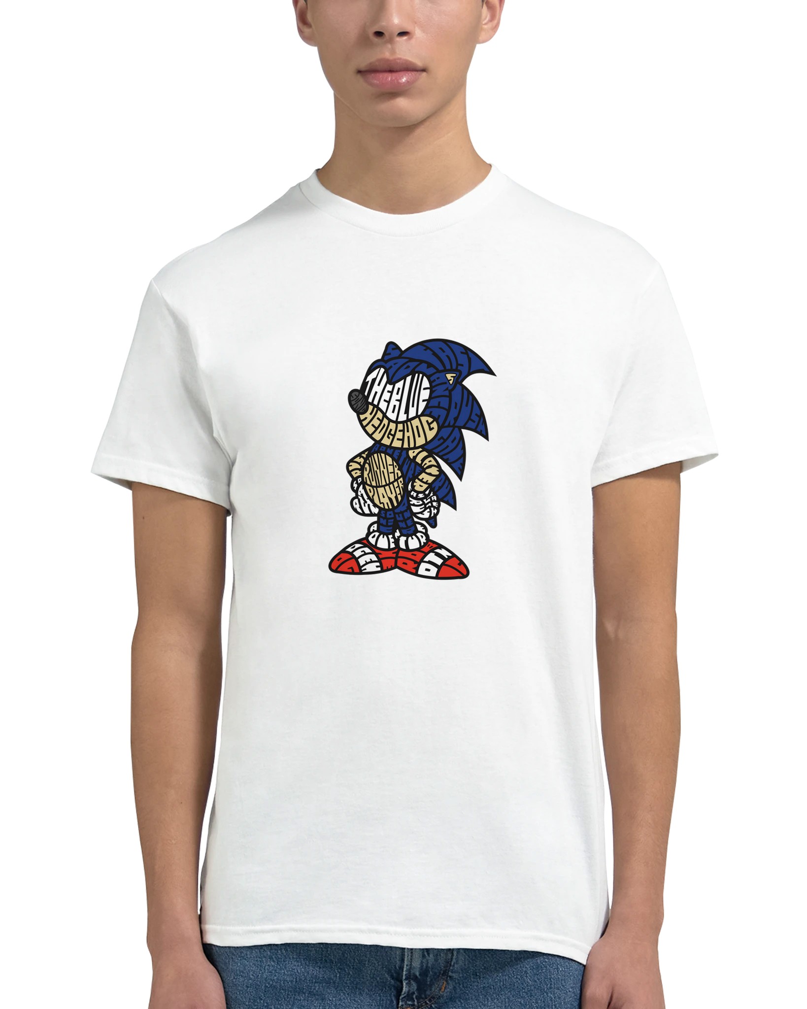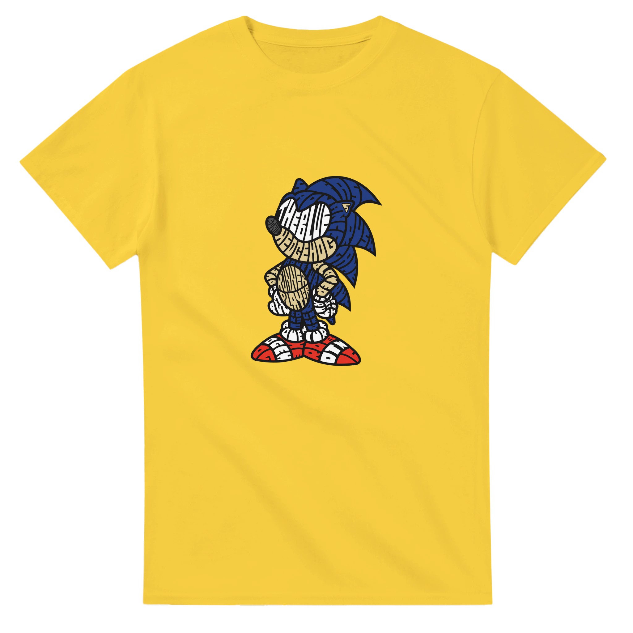 The Blue Hedgehog – Unisex T-Shirt med Ikonisk Tryck, Slitstark Bomull för Vardags och Gaming