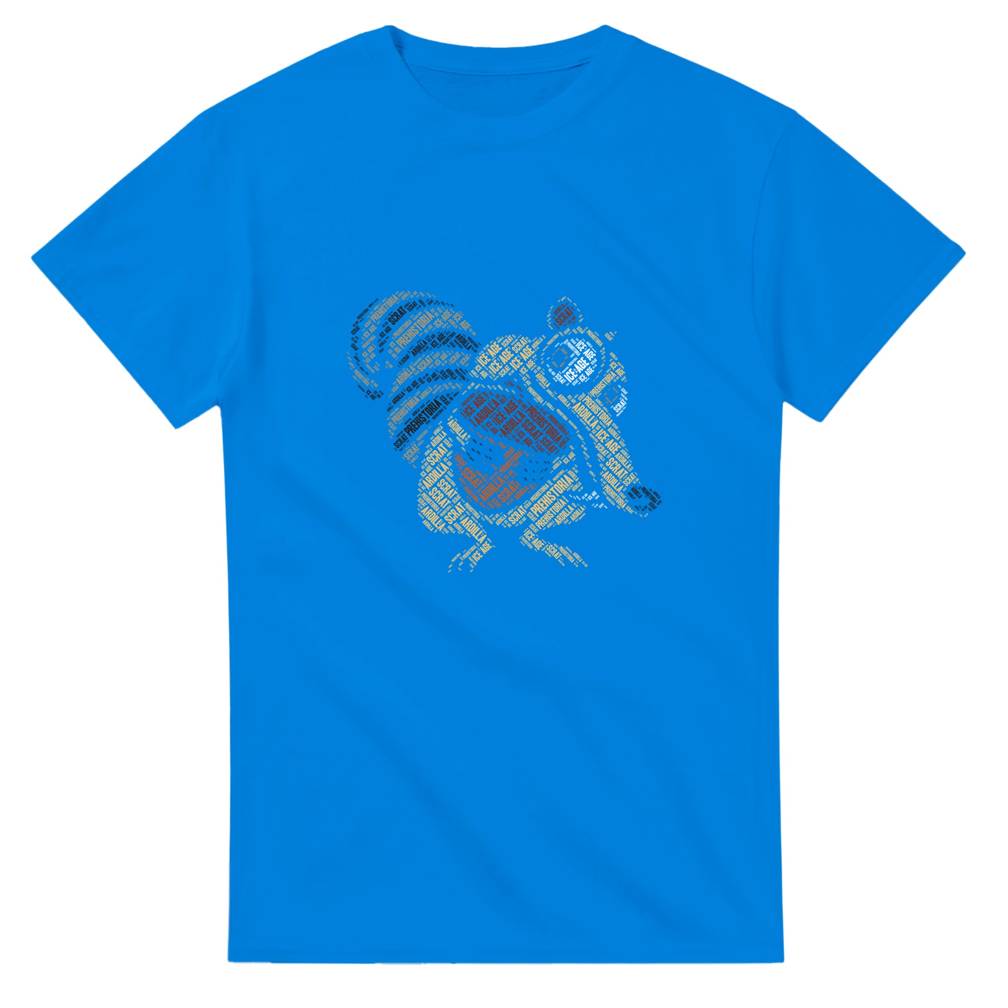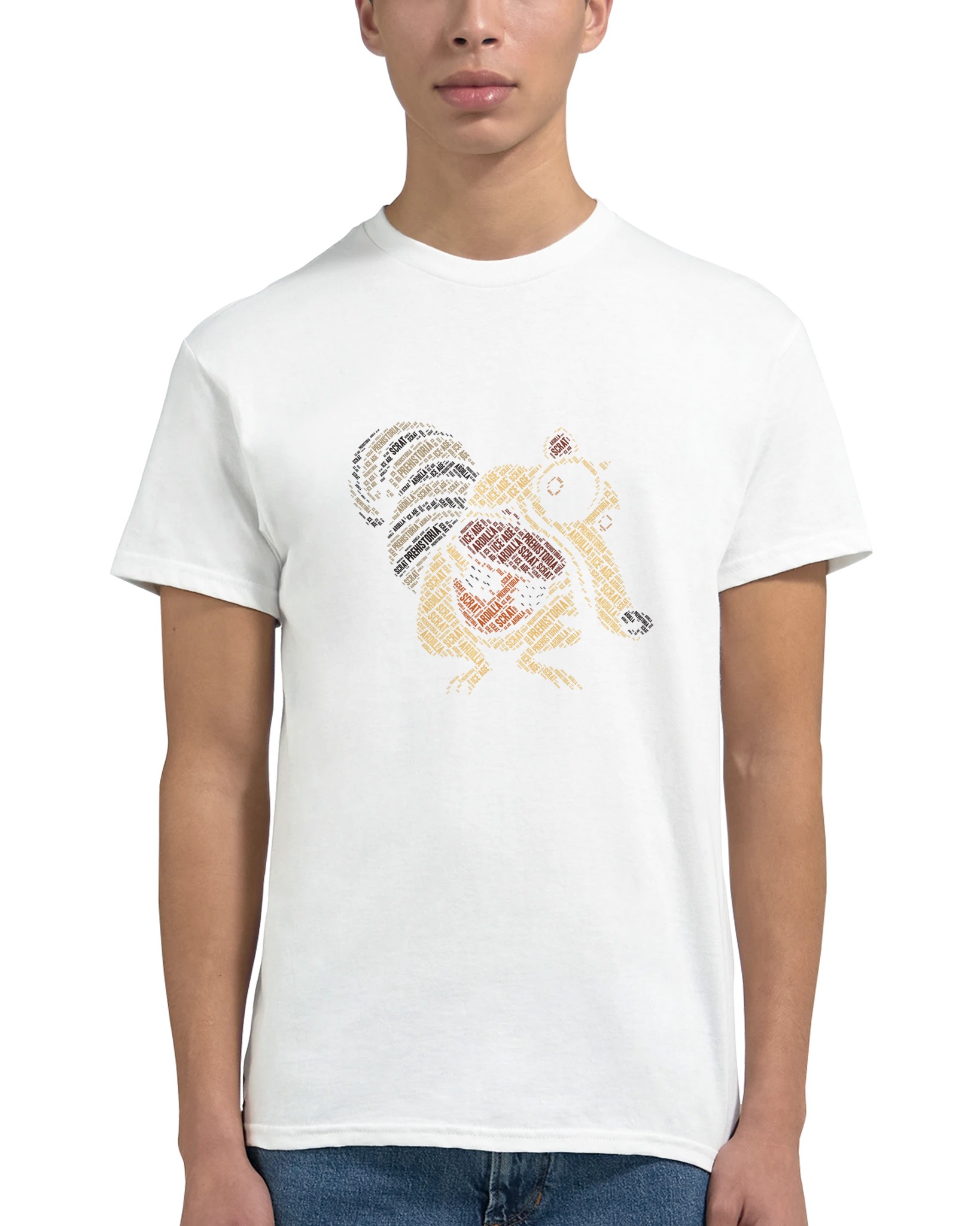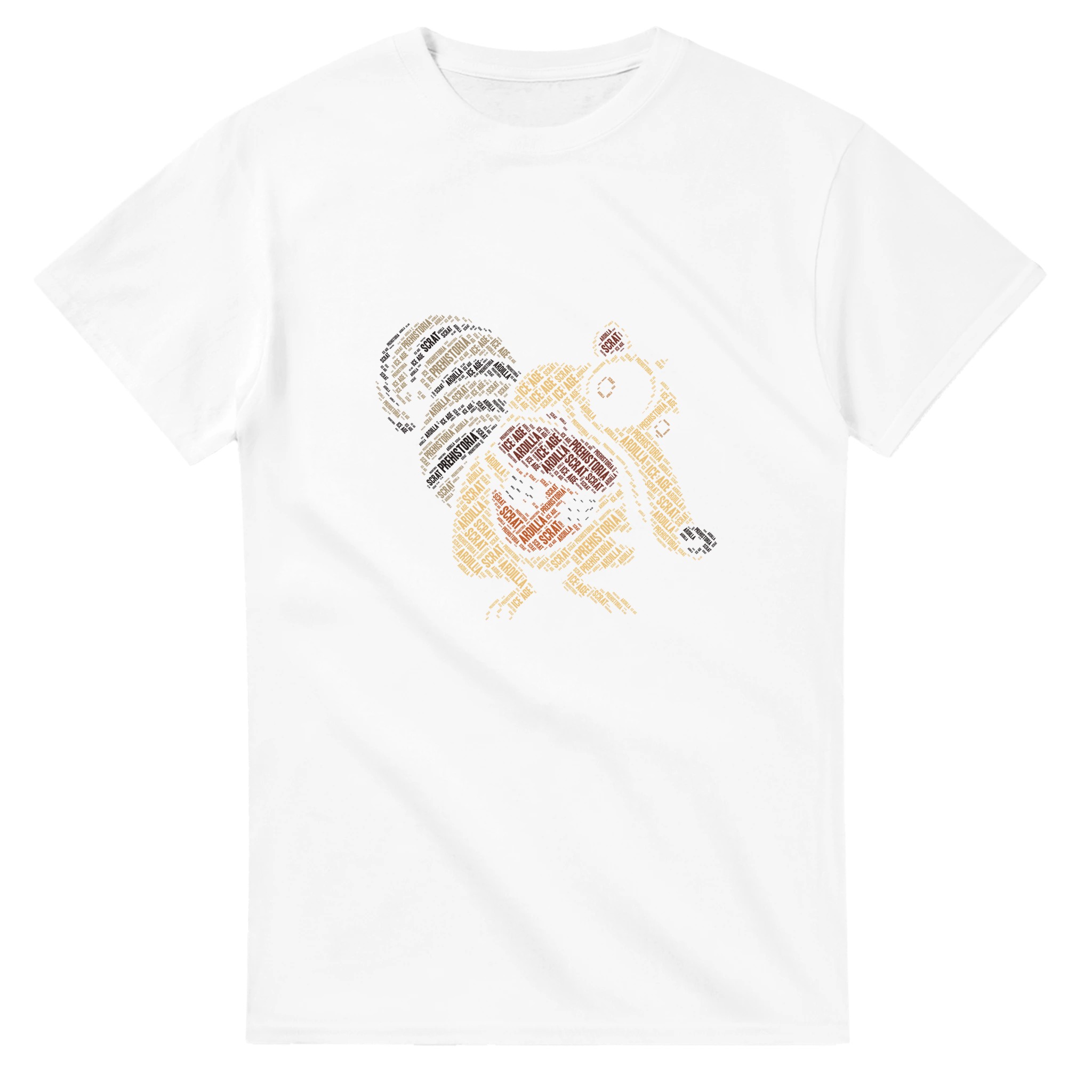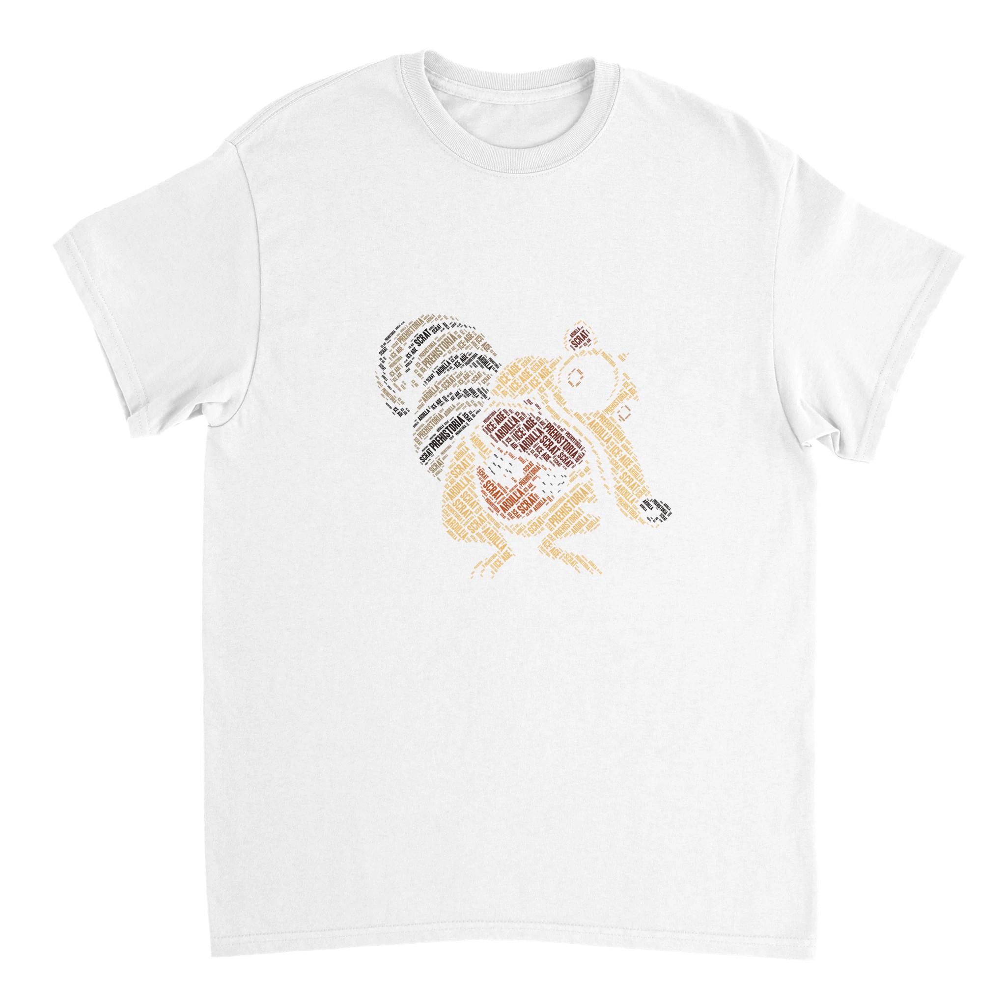 Ikonisk Scrat “Ice Age” Ordmoln T-shirt – Unik Konstdesign i Tålig Bomull för Filmfans