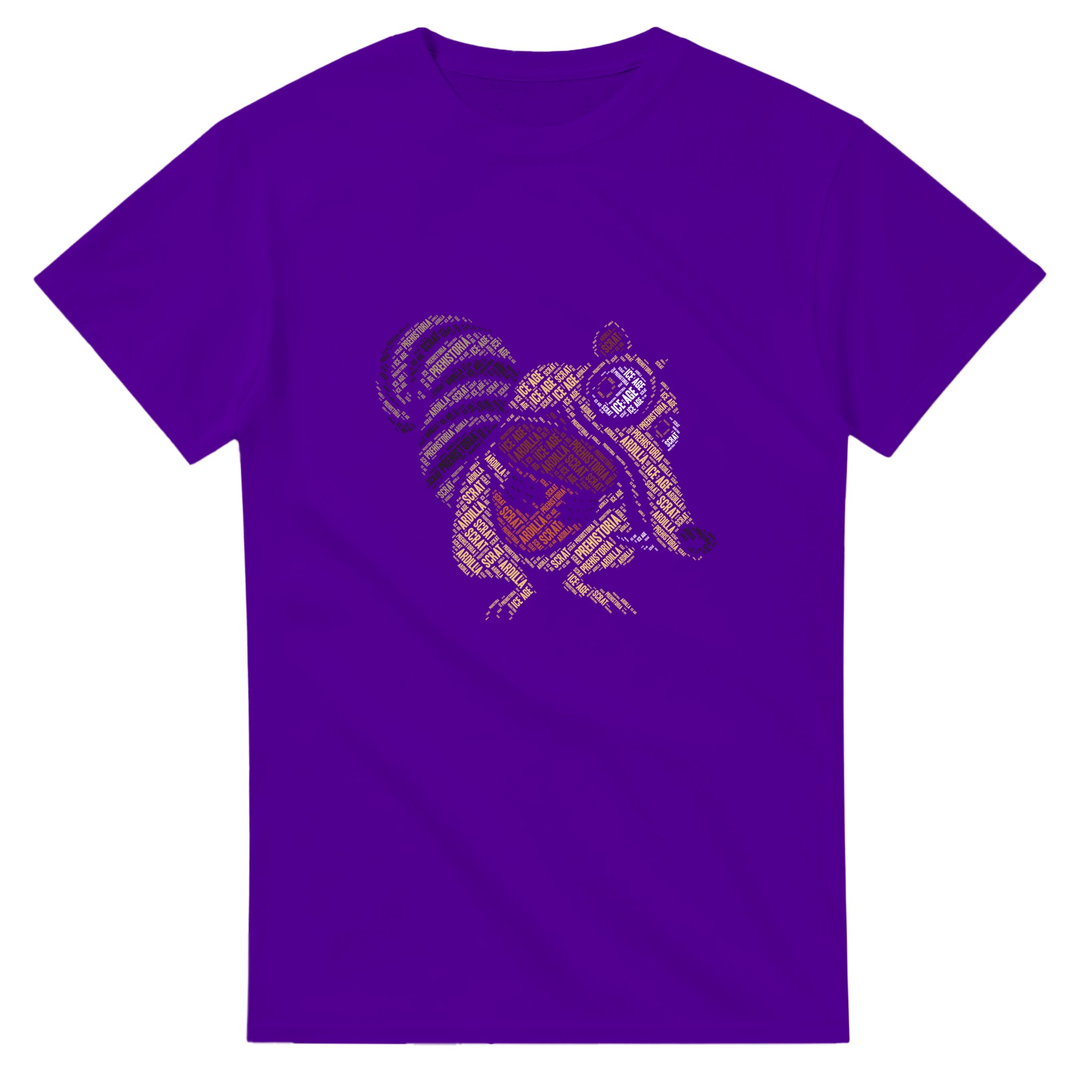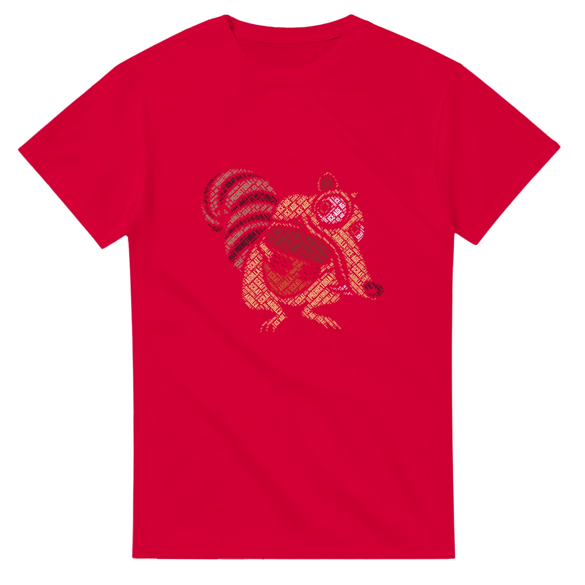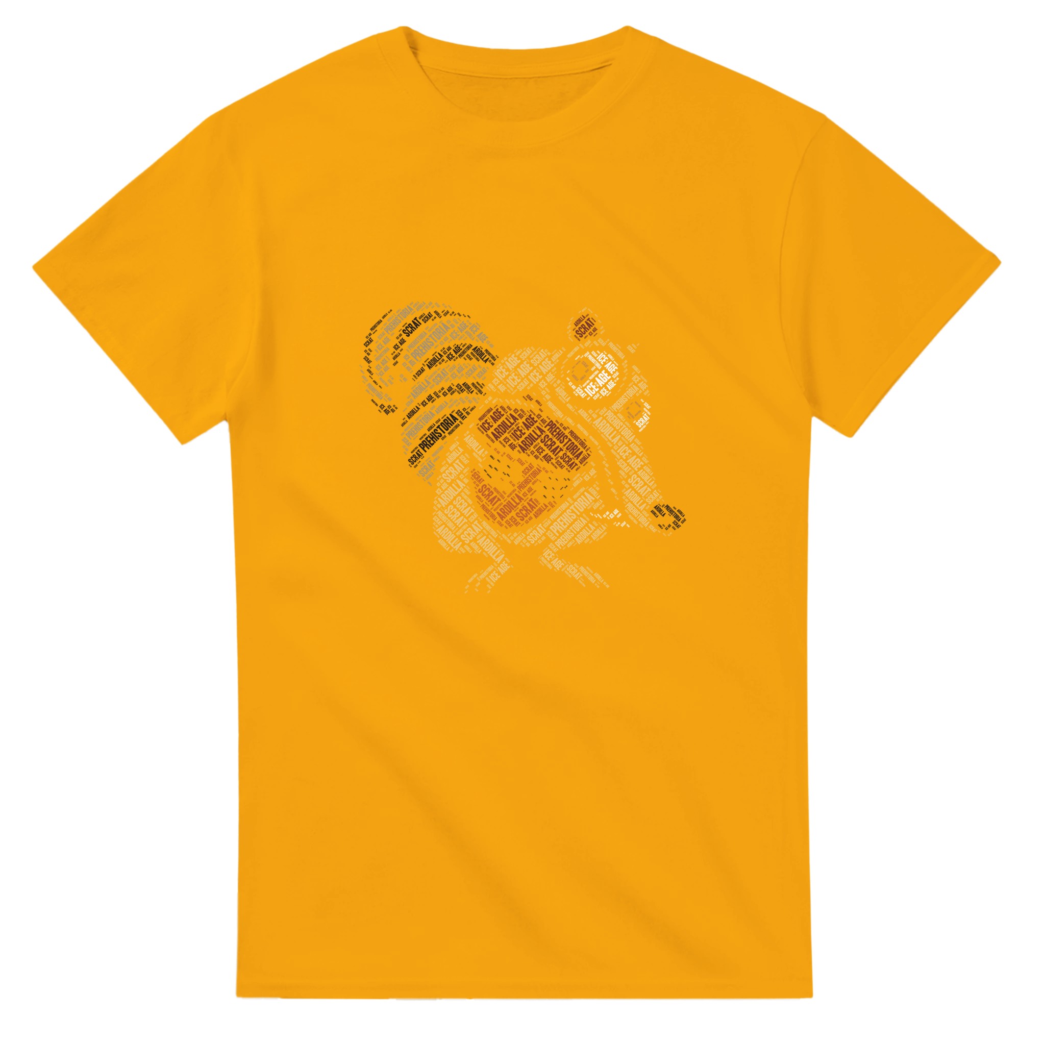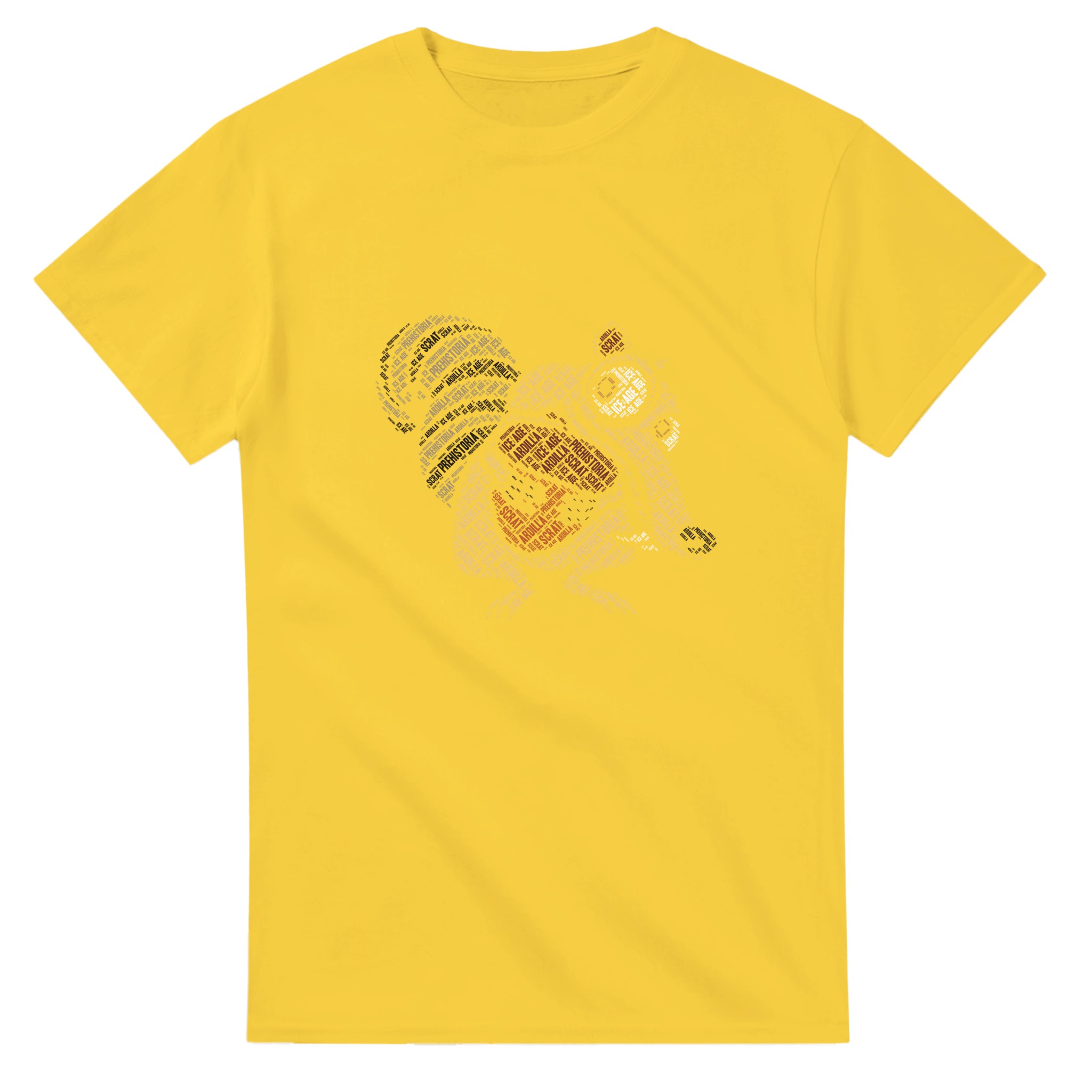 Ikonisk Scrat “Ice Age” Ordmoln T-shirt – Unik Konstdesign i Tålig Bomull för Filmfans