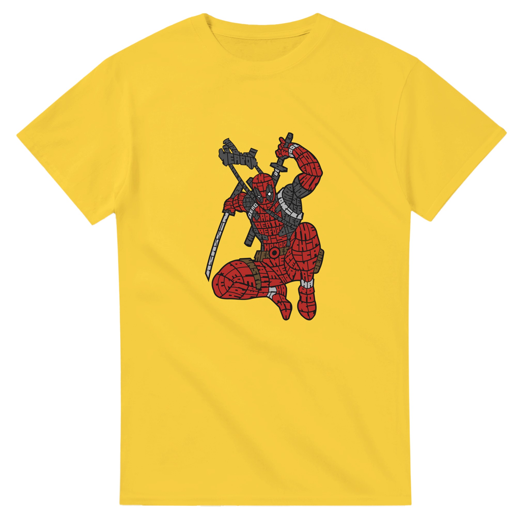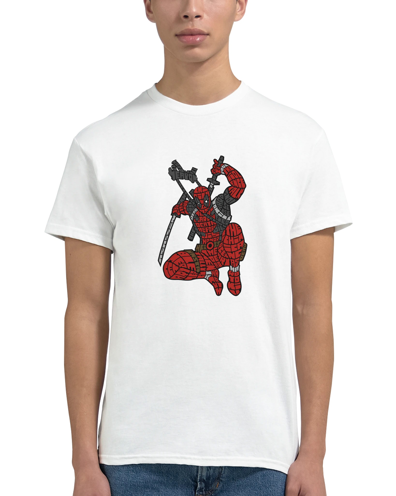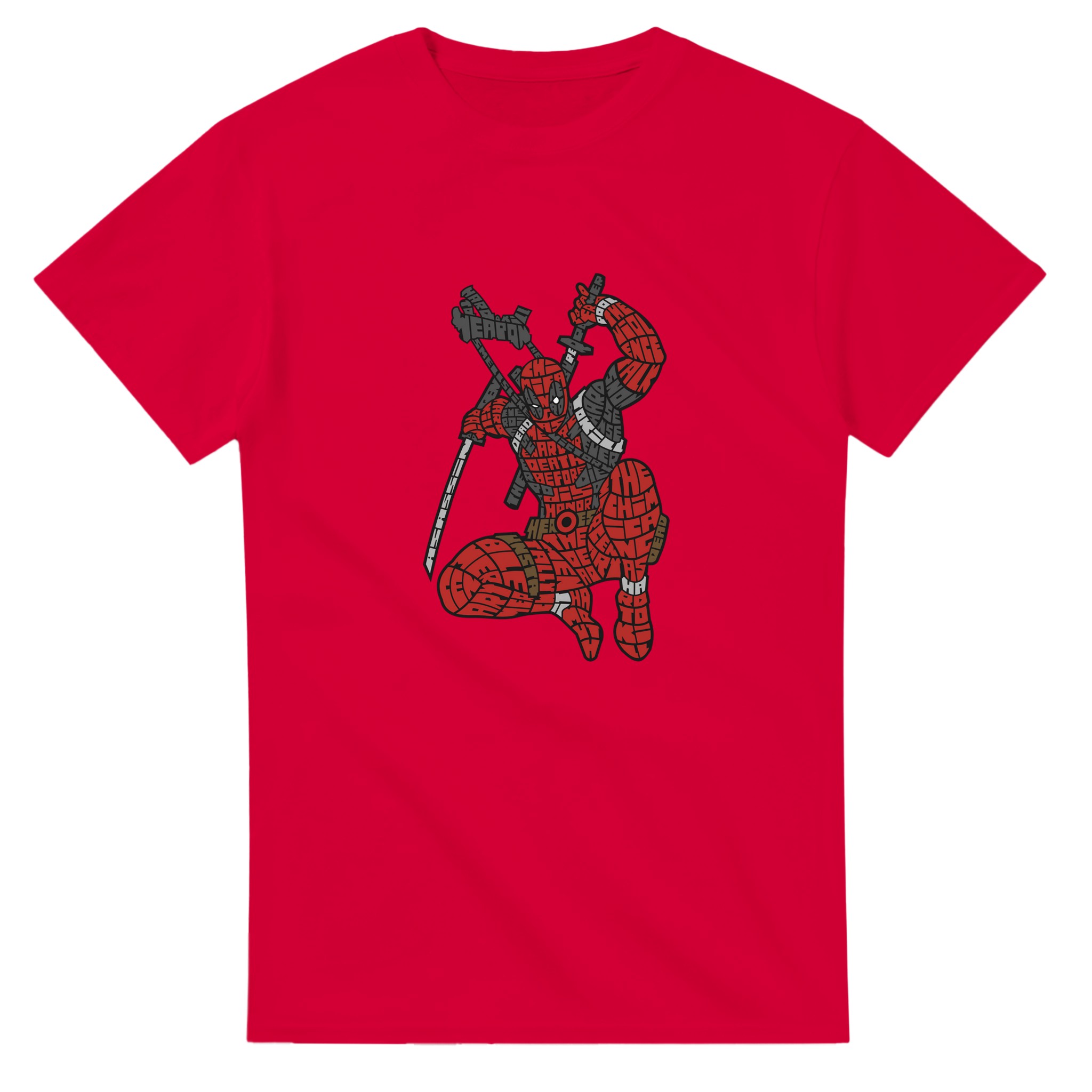 Deadpool Ordkonst T-shirt – Unik Grafisk Design i Bomull för Fans av Anti-Hjältar