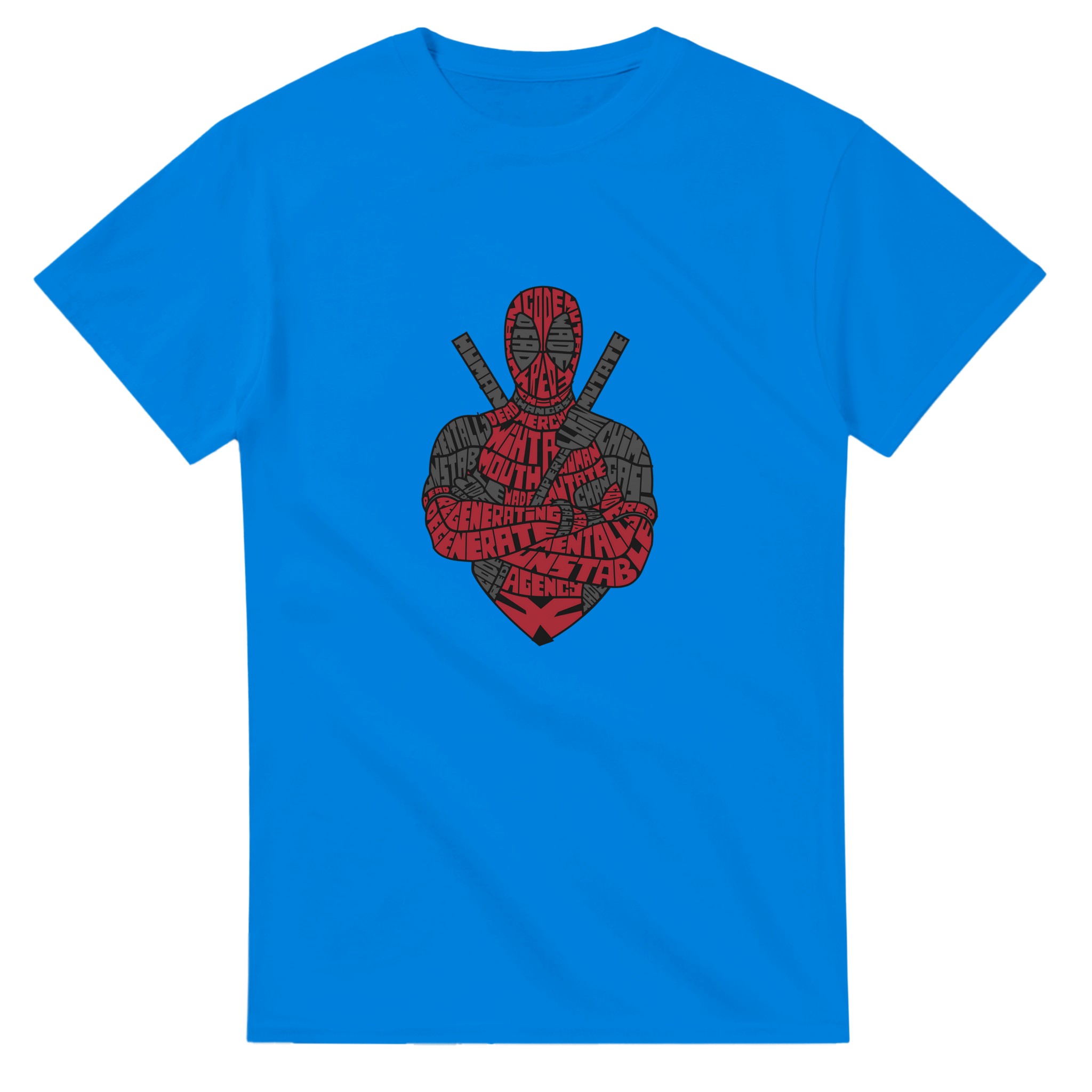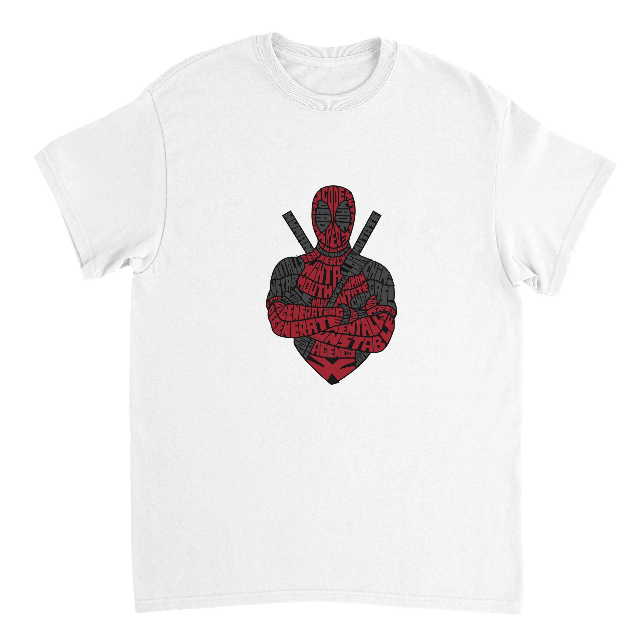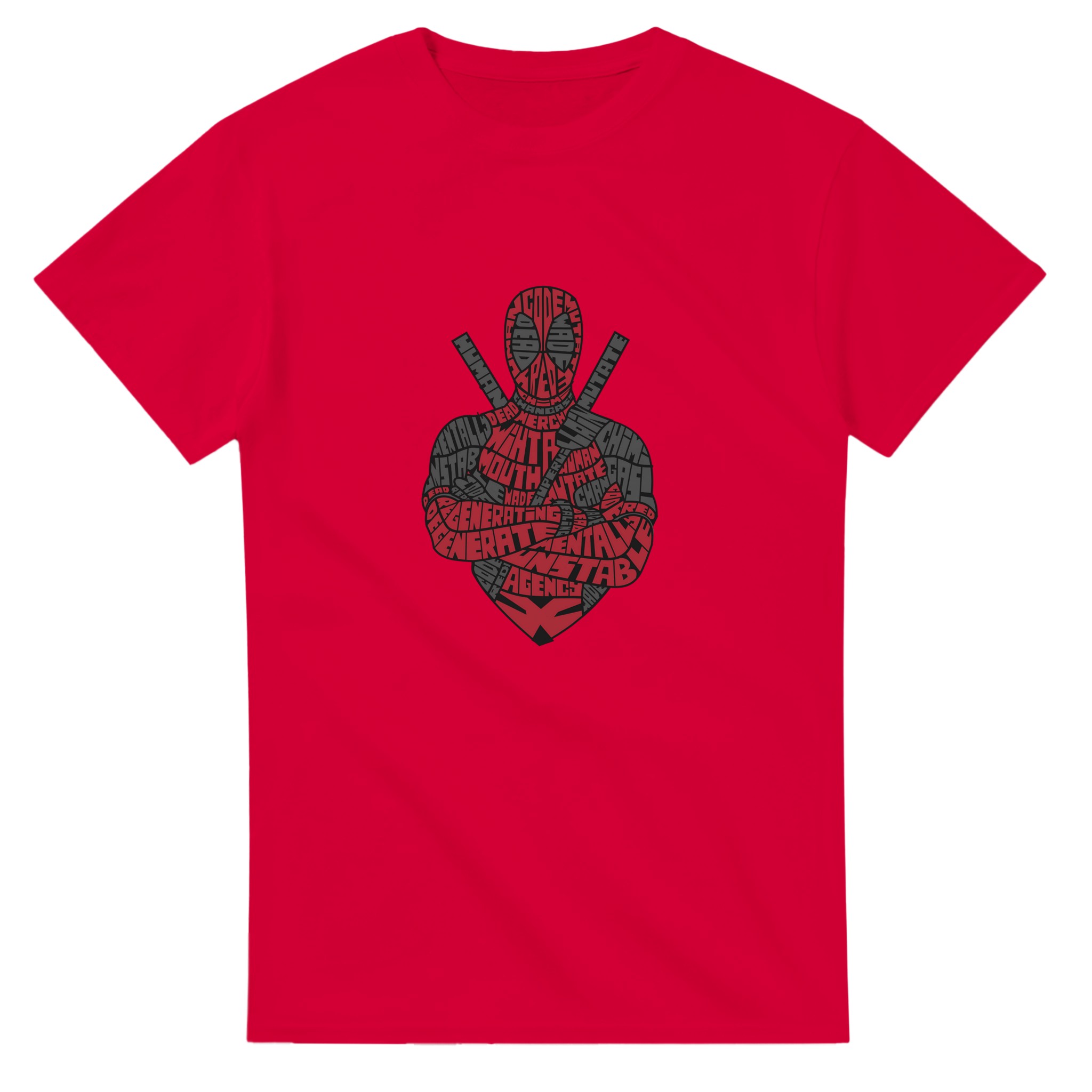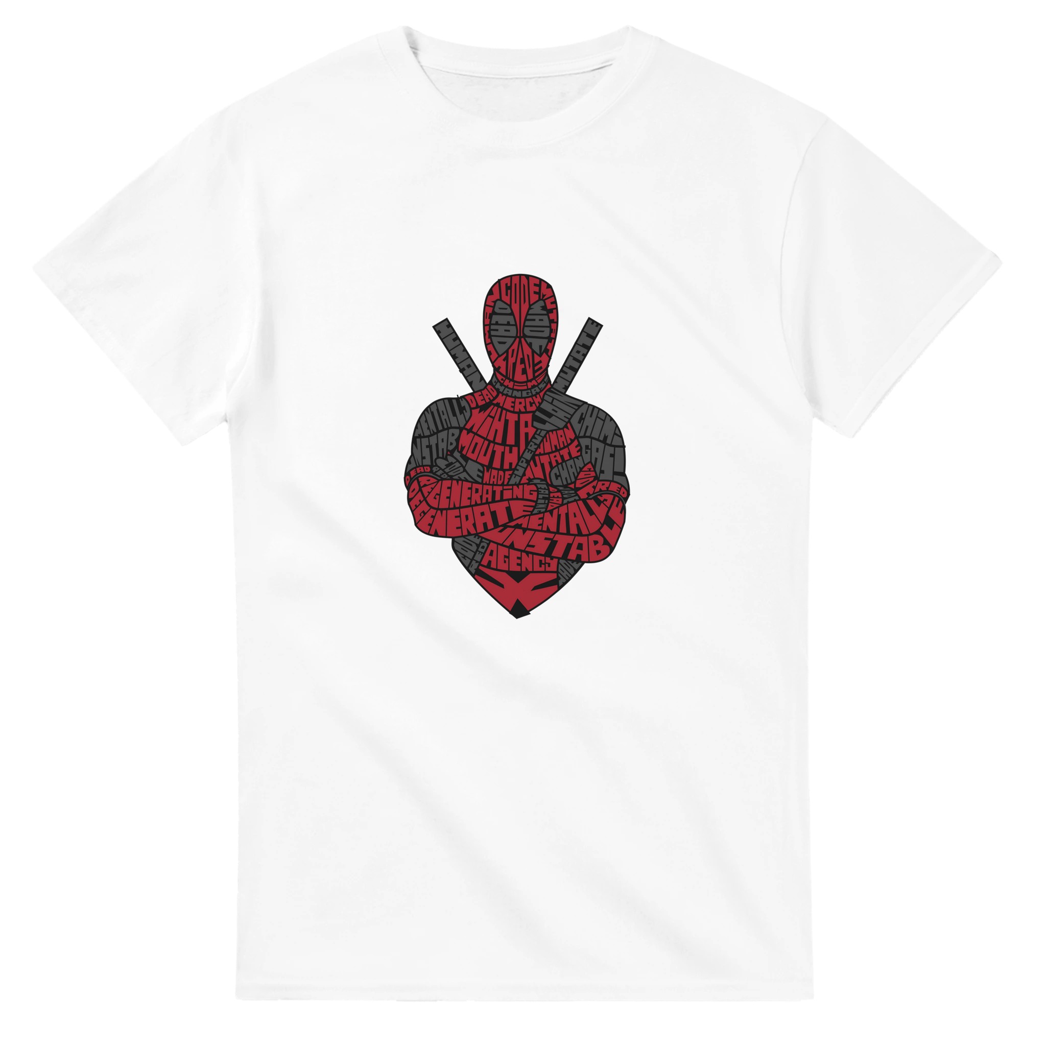 Deadpool Ordmoln T-shirt – Unik, Slitstark Design för Fans av Seriehjältar, Välj din Favoritfärg