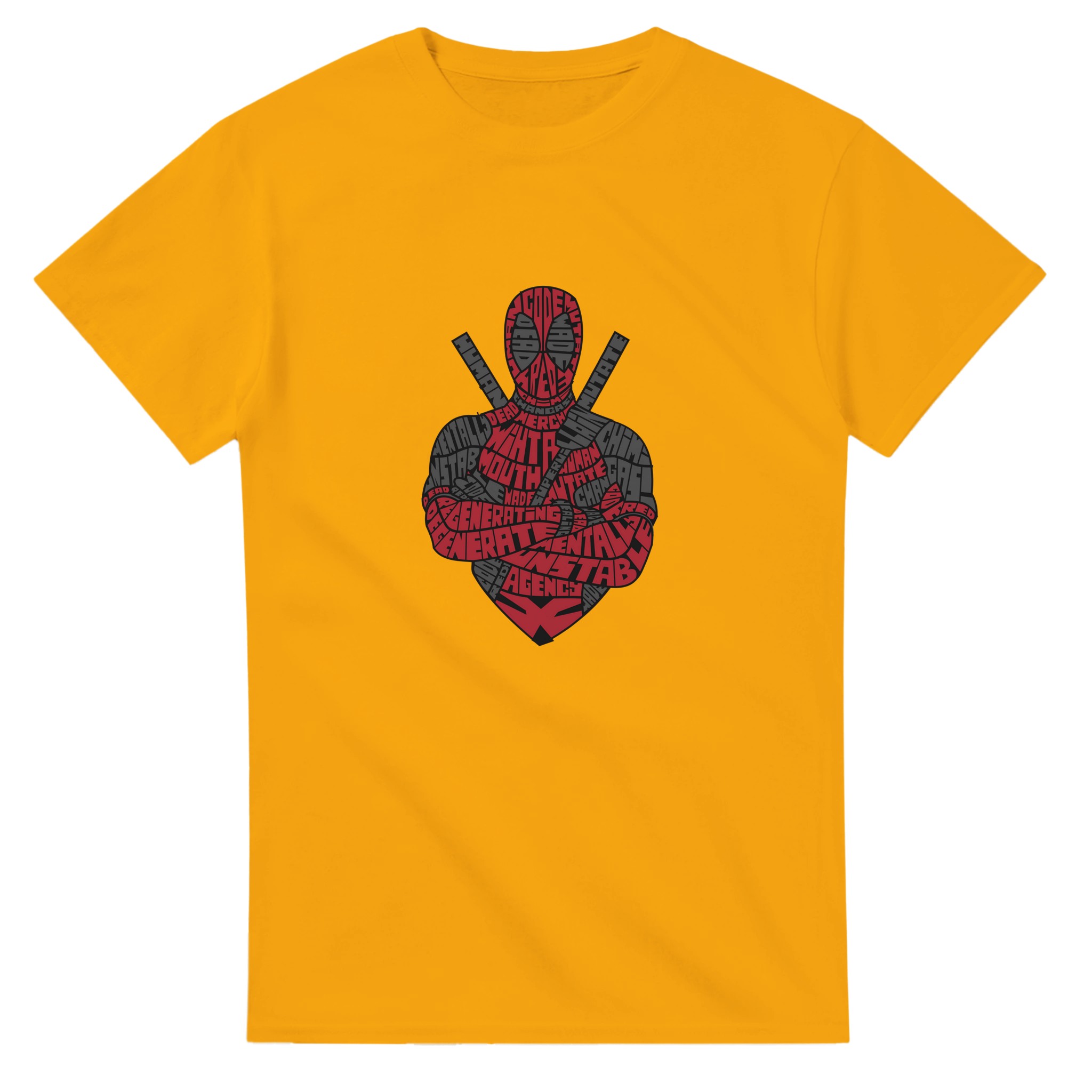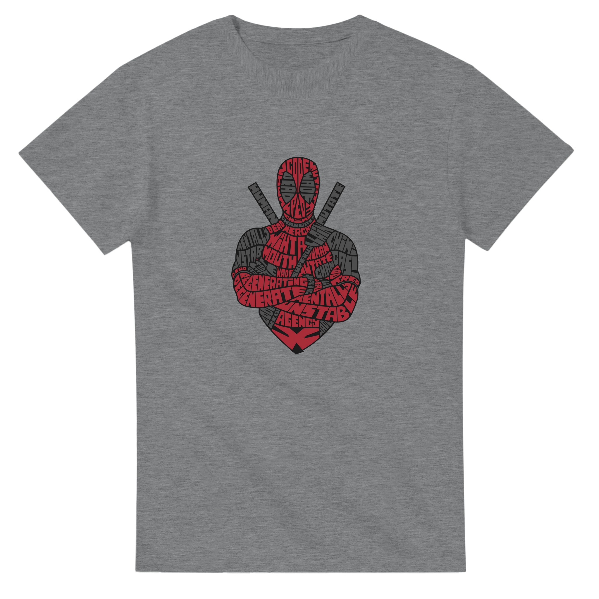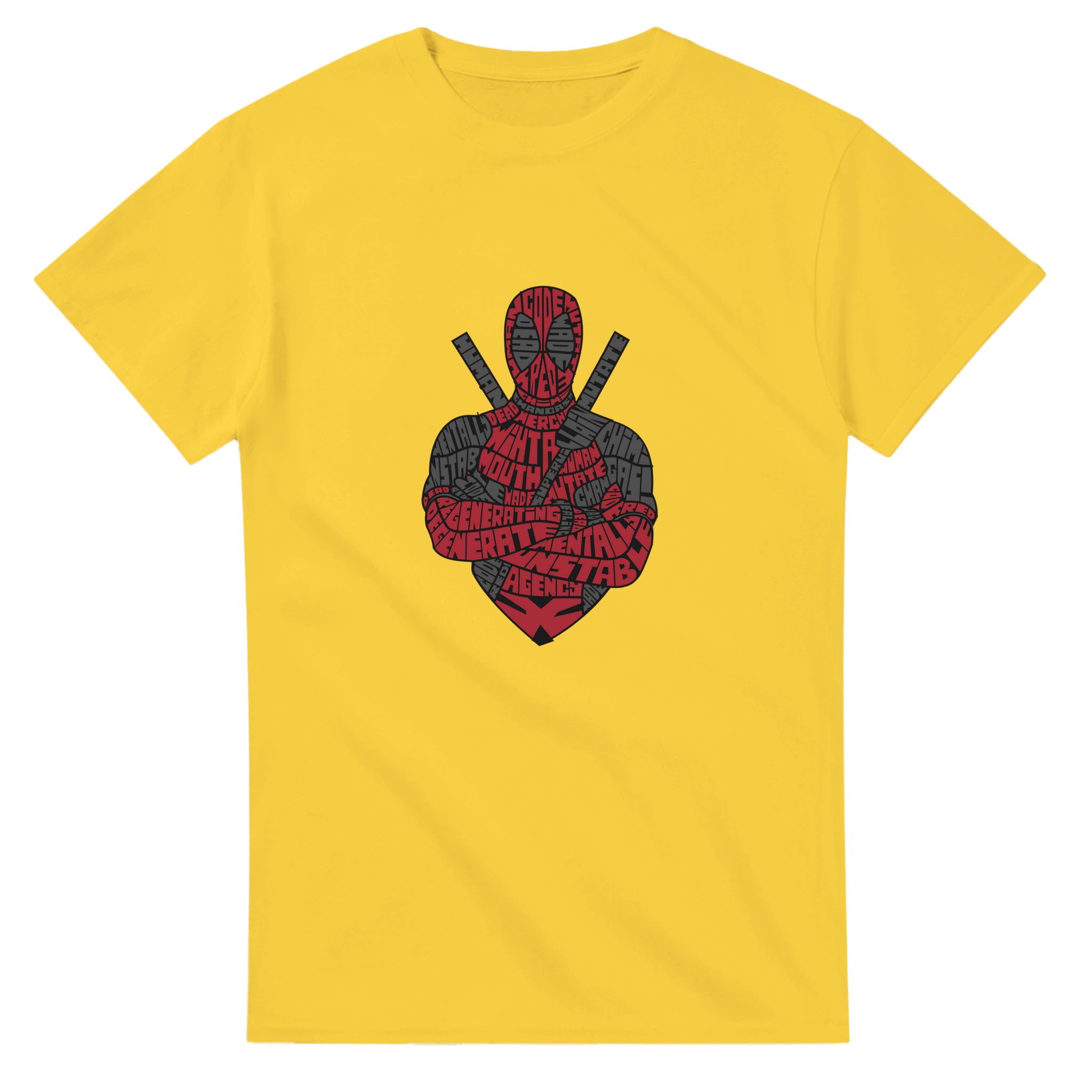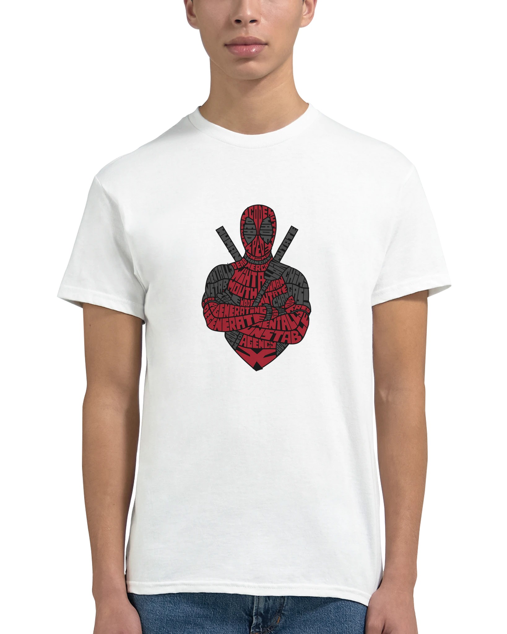 Deadpool Ordmoln T-shirt – Unik, Slitstark Design för Fans av Seriehjältar, Välj din Favoritfärg