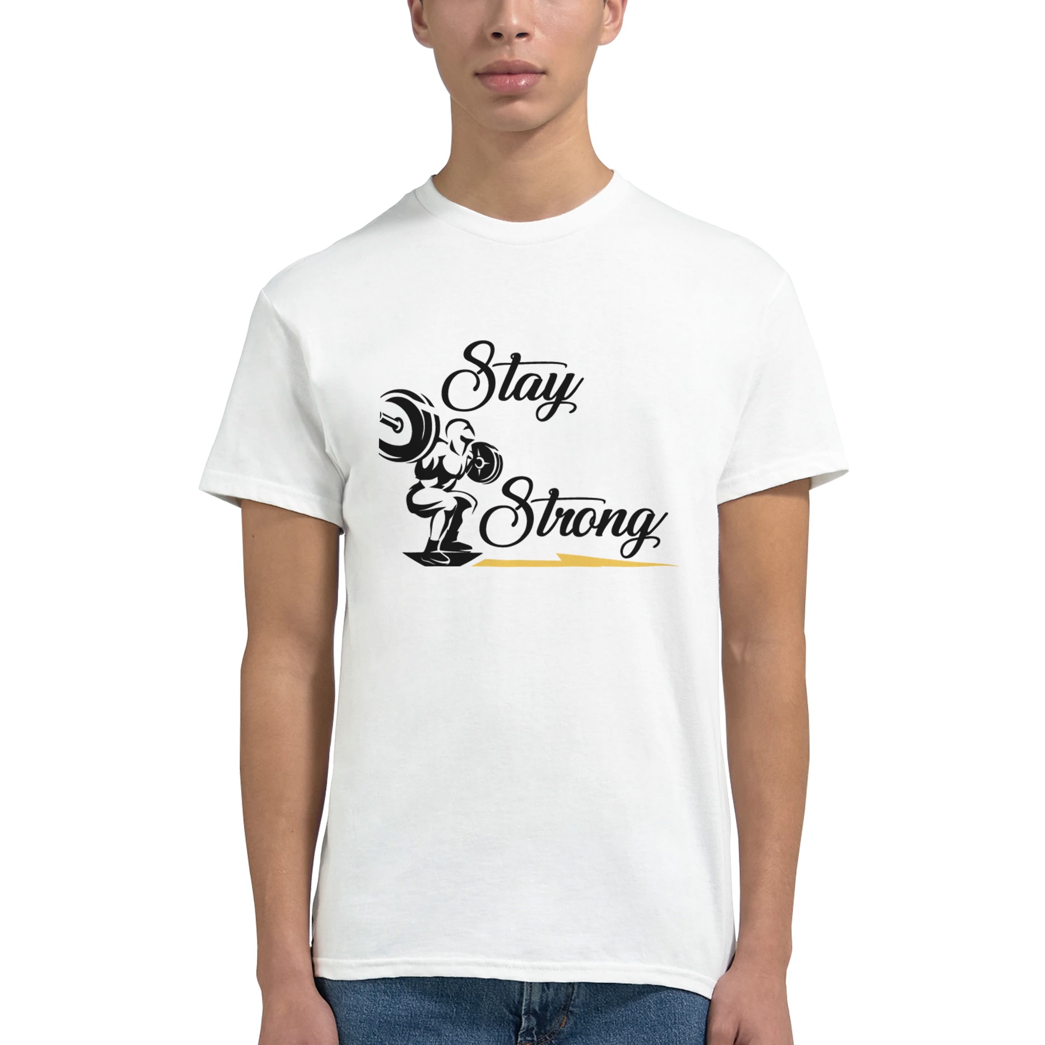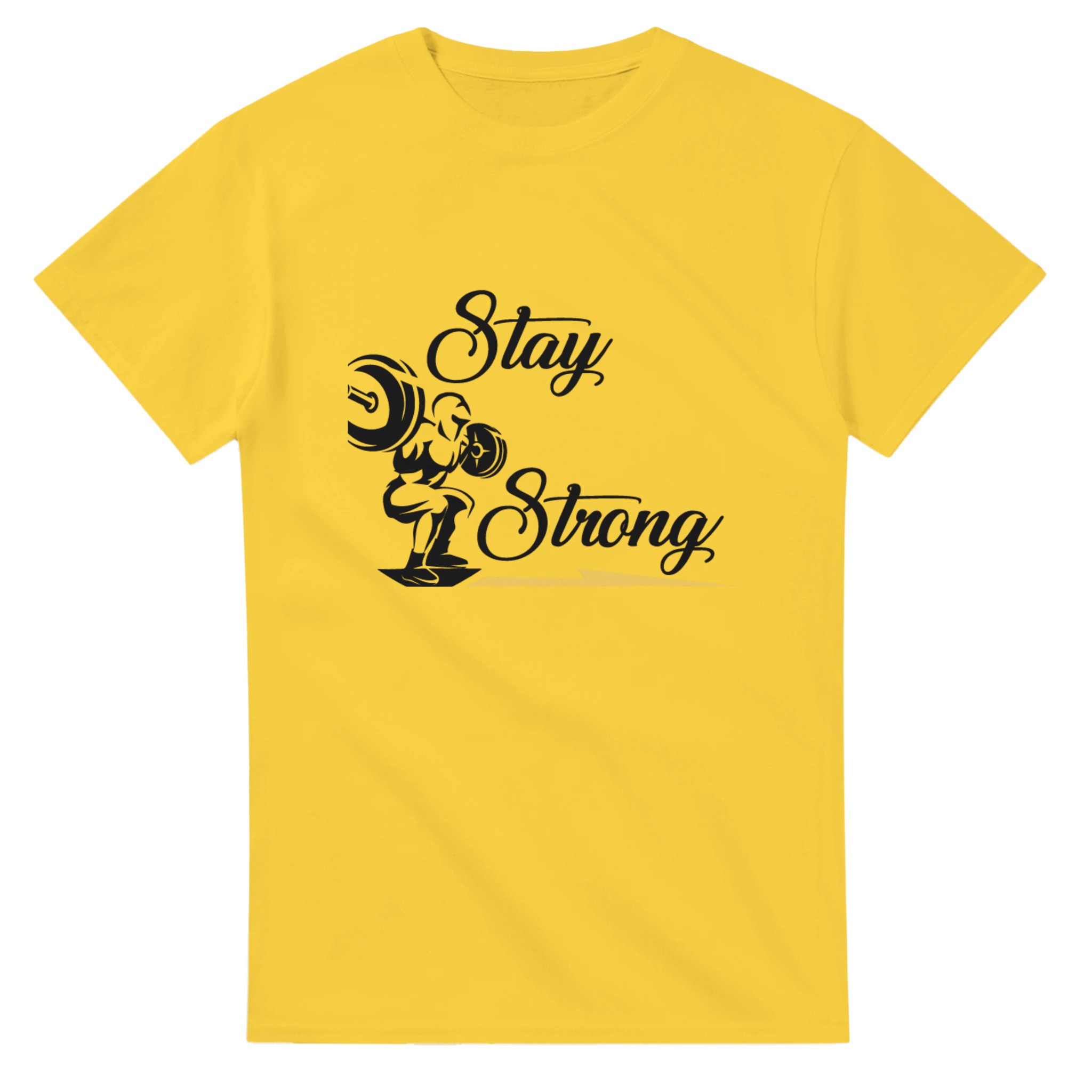 Klassisk Bomulls-T-shirt – ‘Stay Strong’ Träningsdesign, Unisex, Slitstark för Gym och Vardag