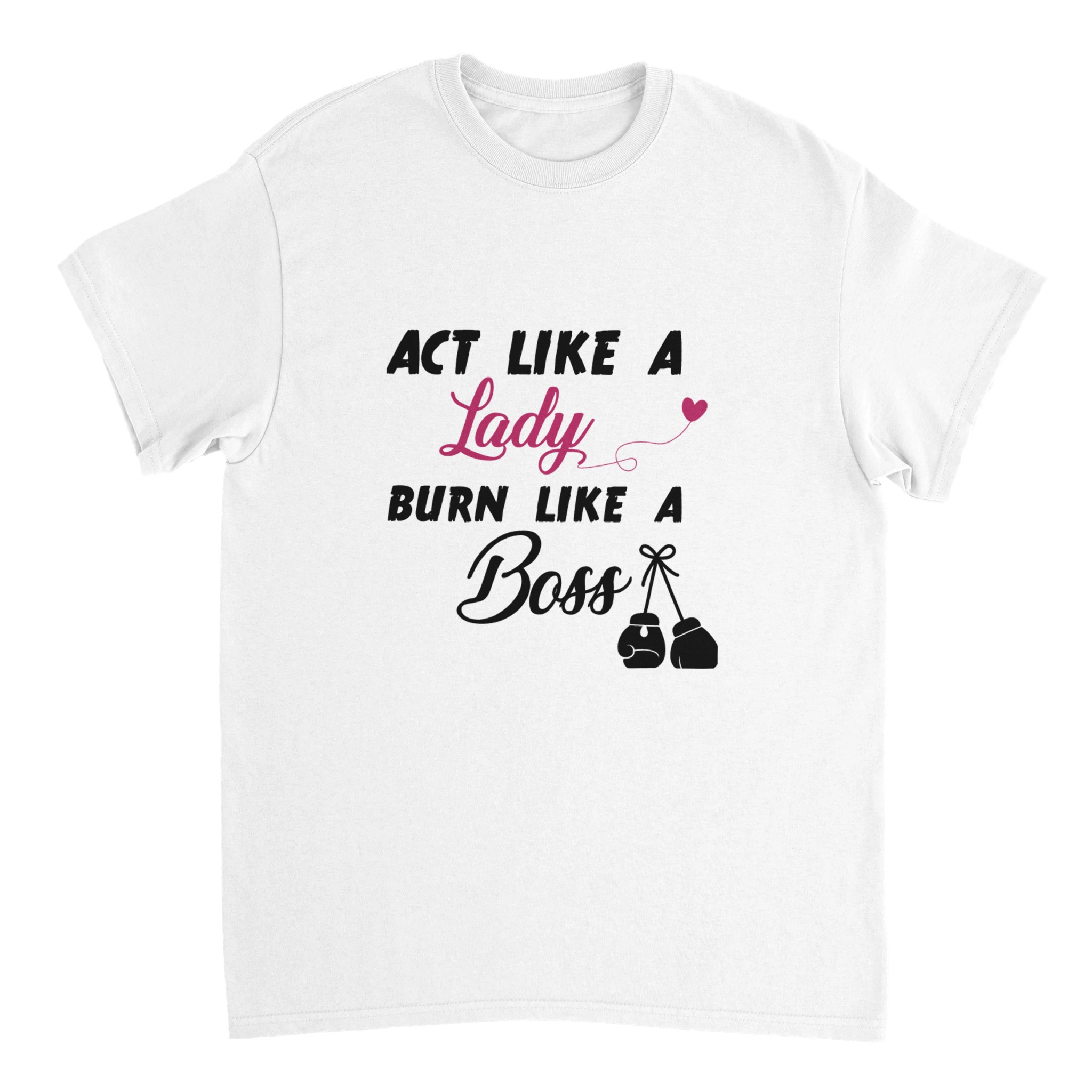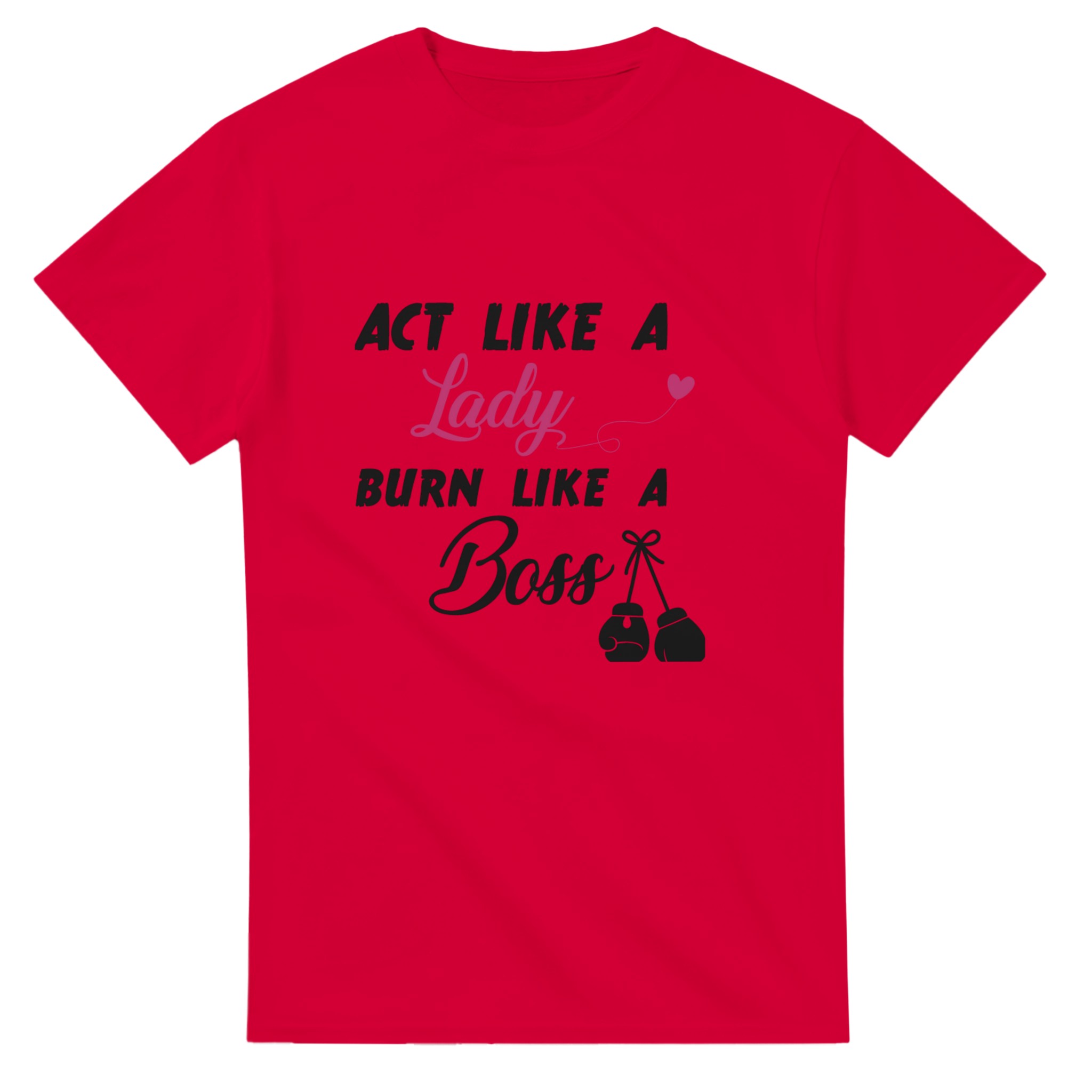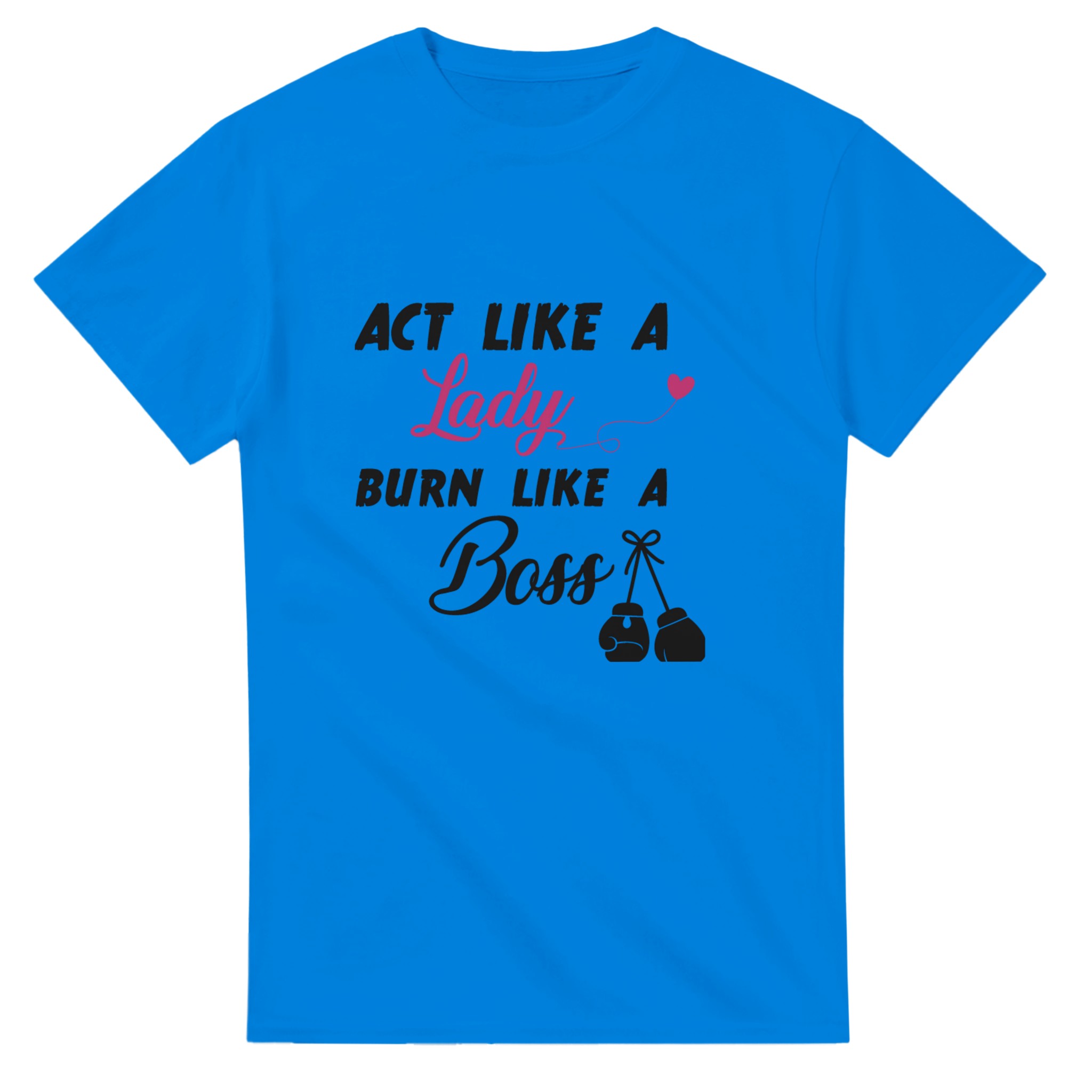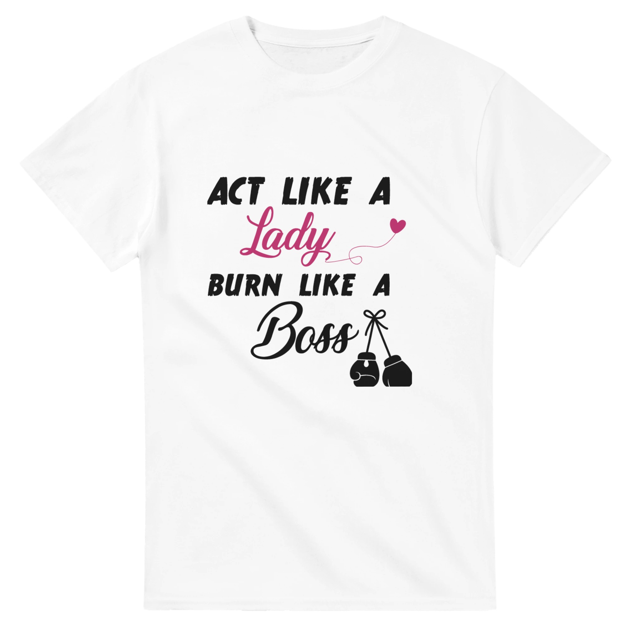 Act Like a Lady, Burn Like a Boss – Empowering & Durable Unisex T-shirt for Everyday & Workouts