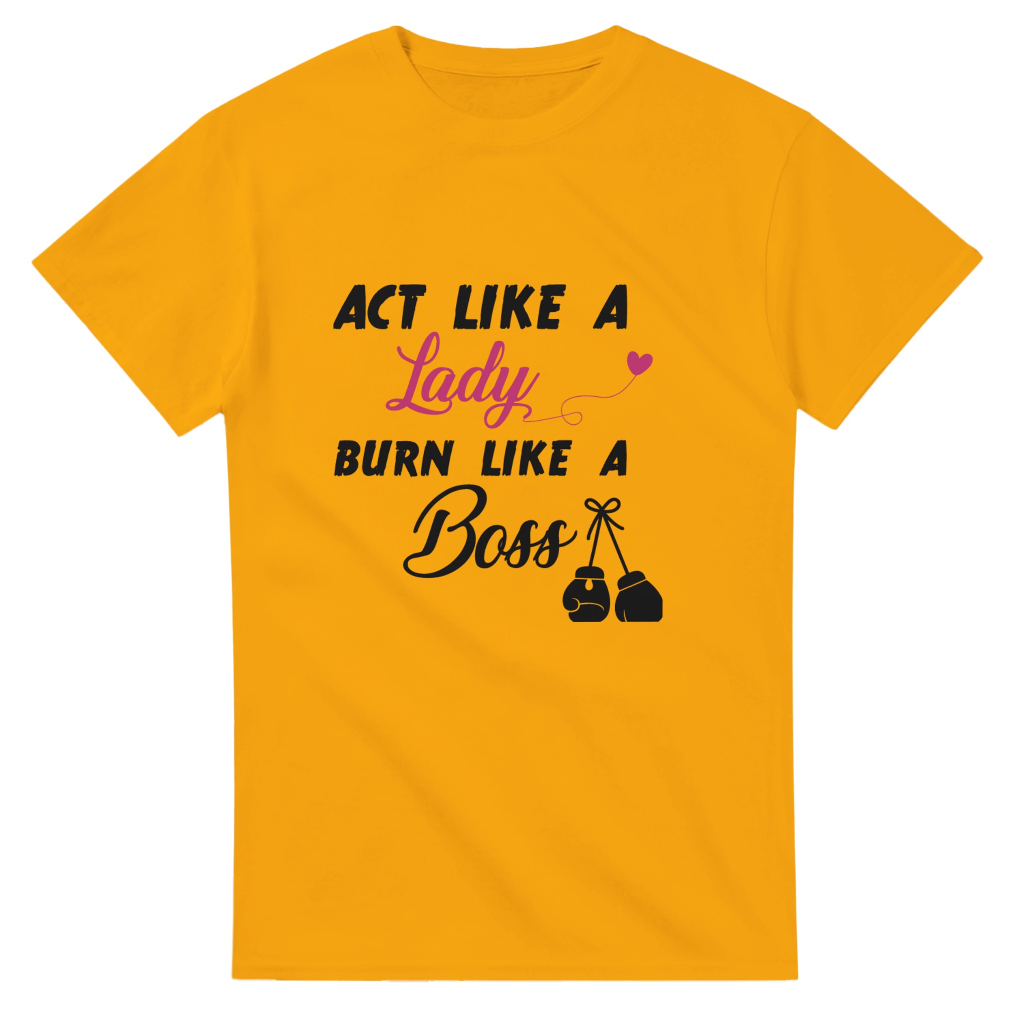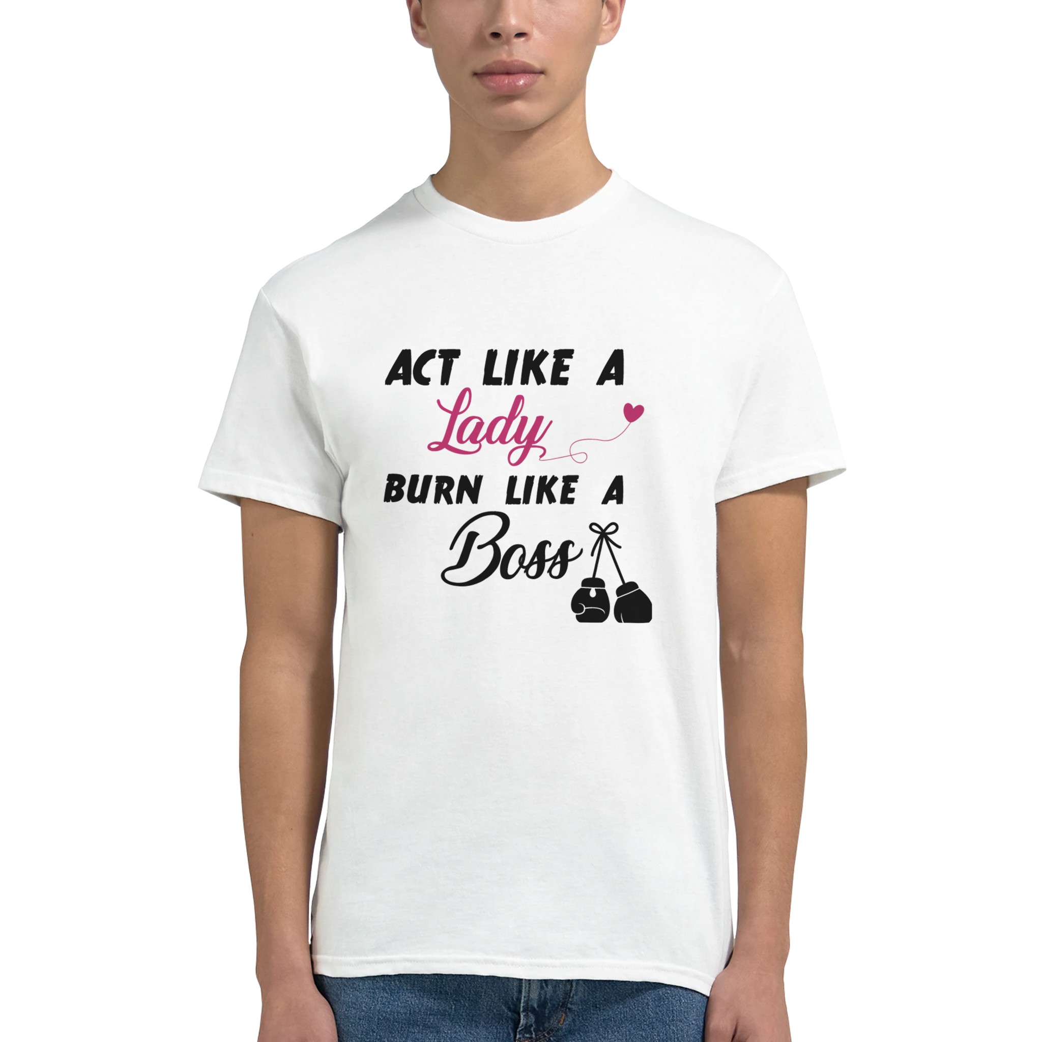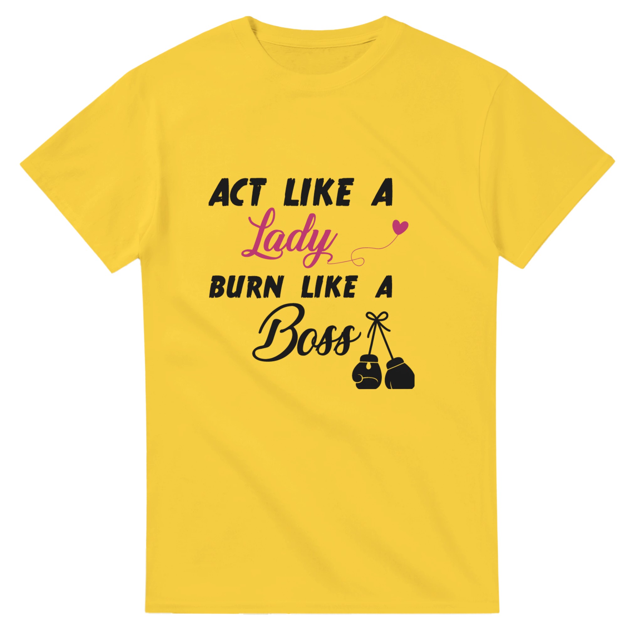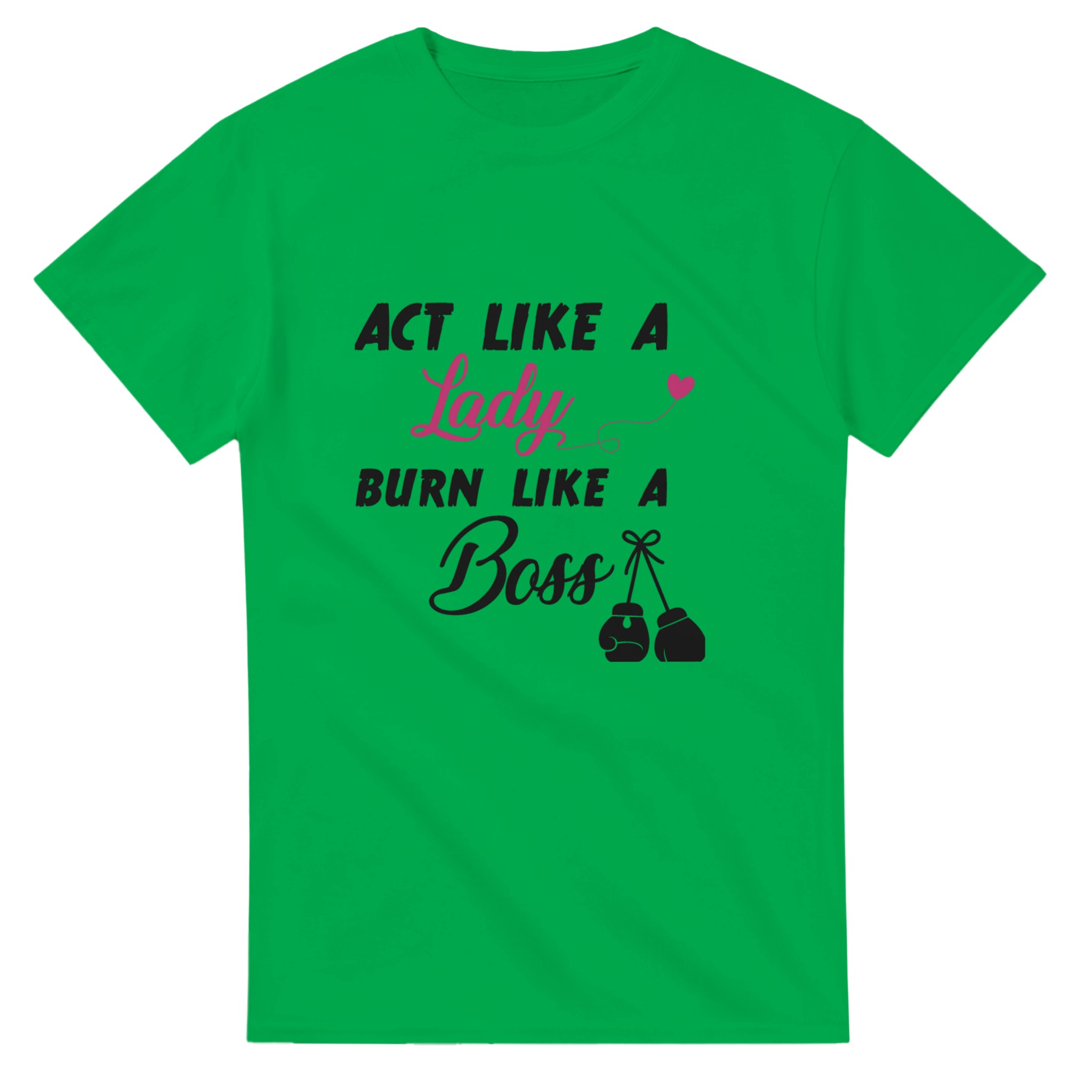 Act Like a Lady, Burn Like a Boss – Empowering & Durable Unisex T-shirt for Everyday & Workouts