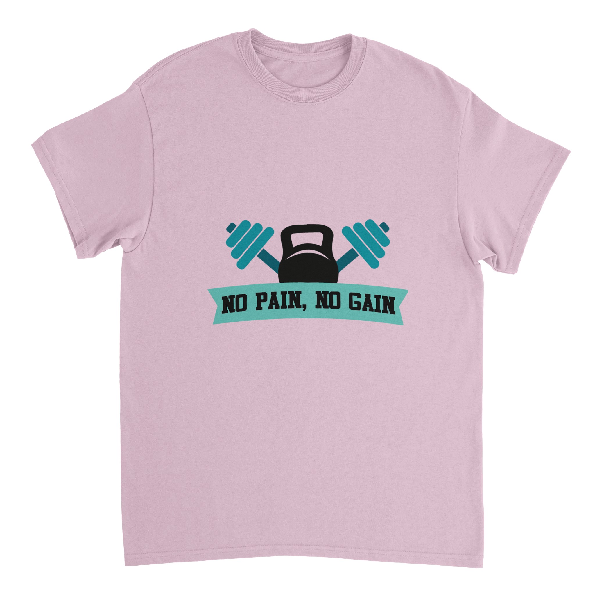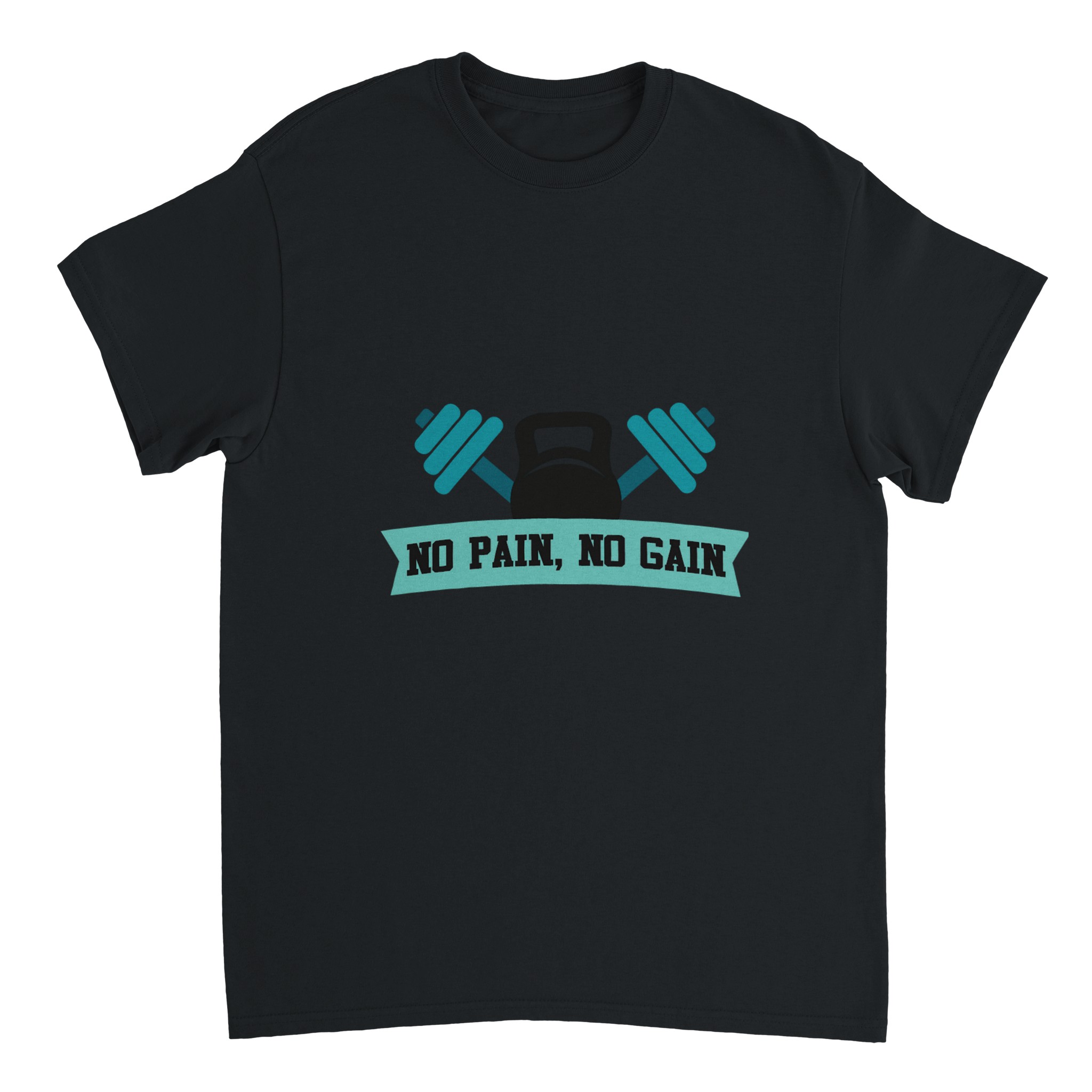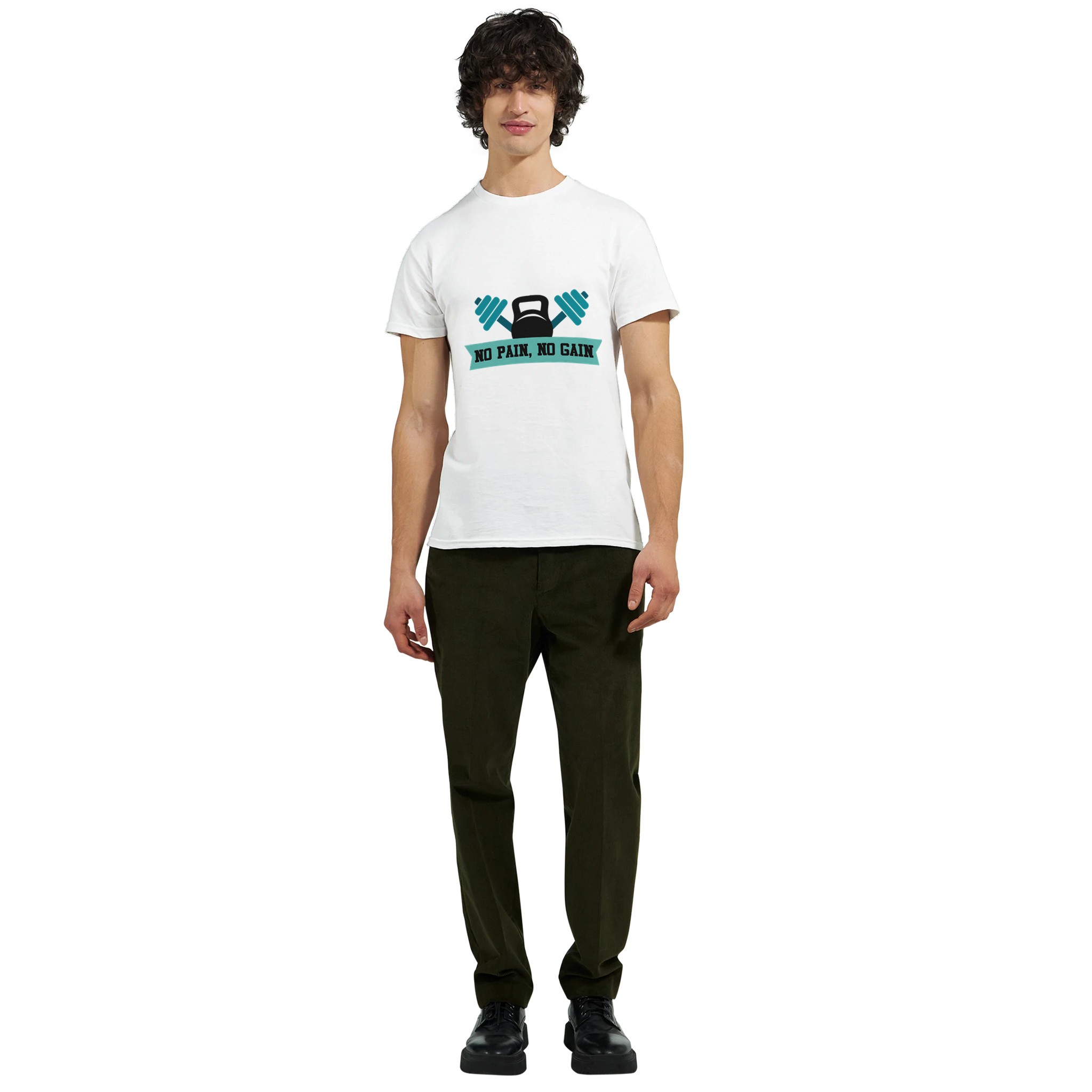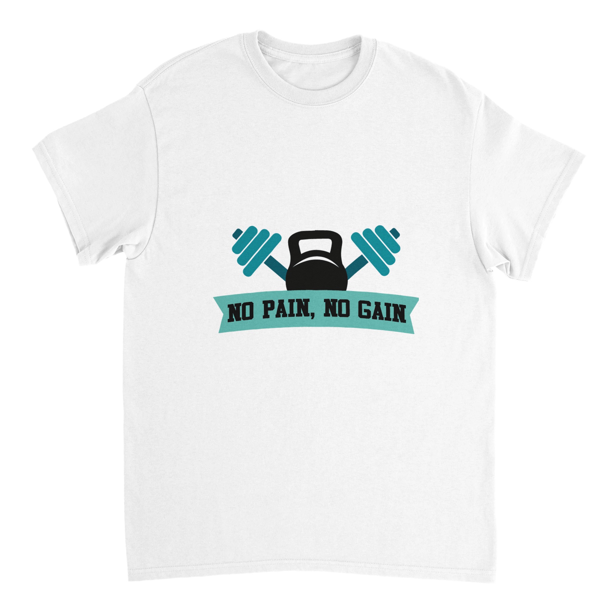 Klassisk Bomulls-T-shirt – ‘No Pain, No Gain’ Design för Träningsentusiaster, Unisex & Slitstark