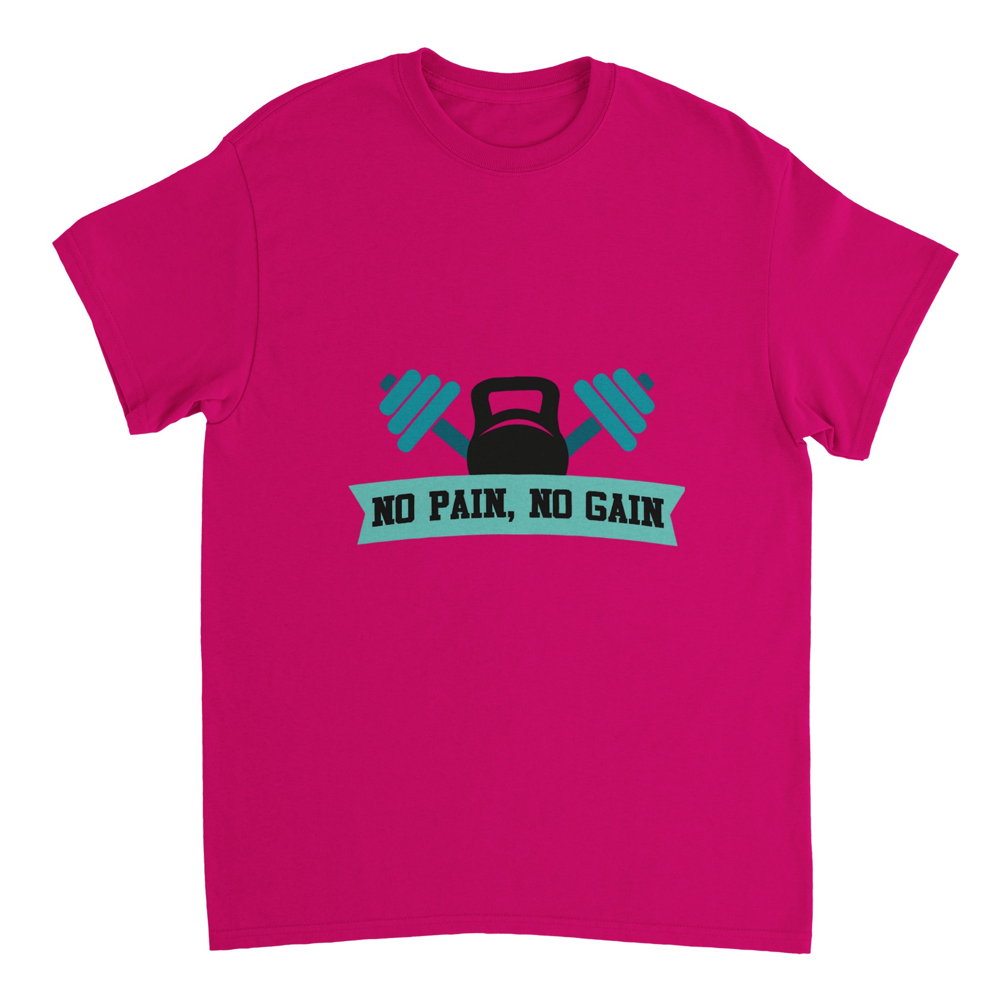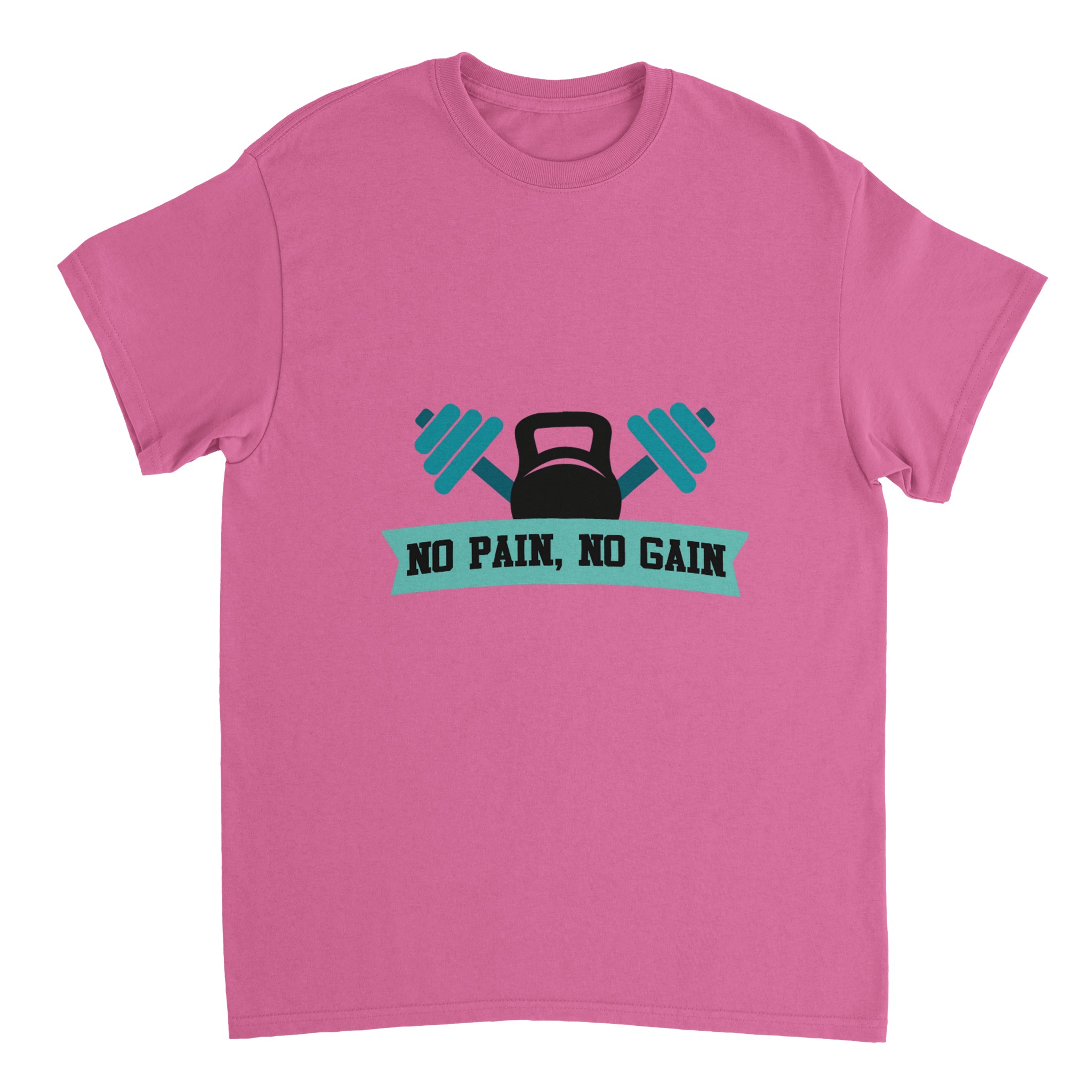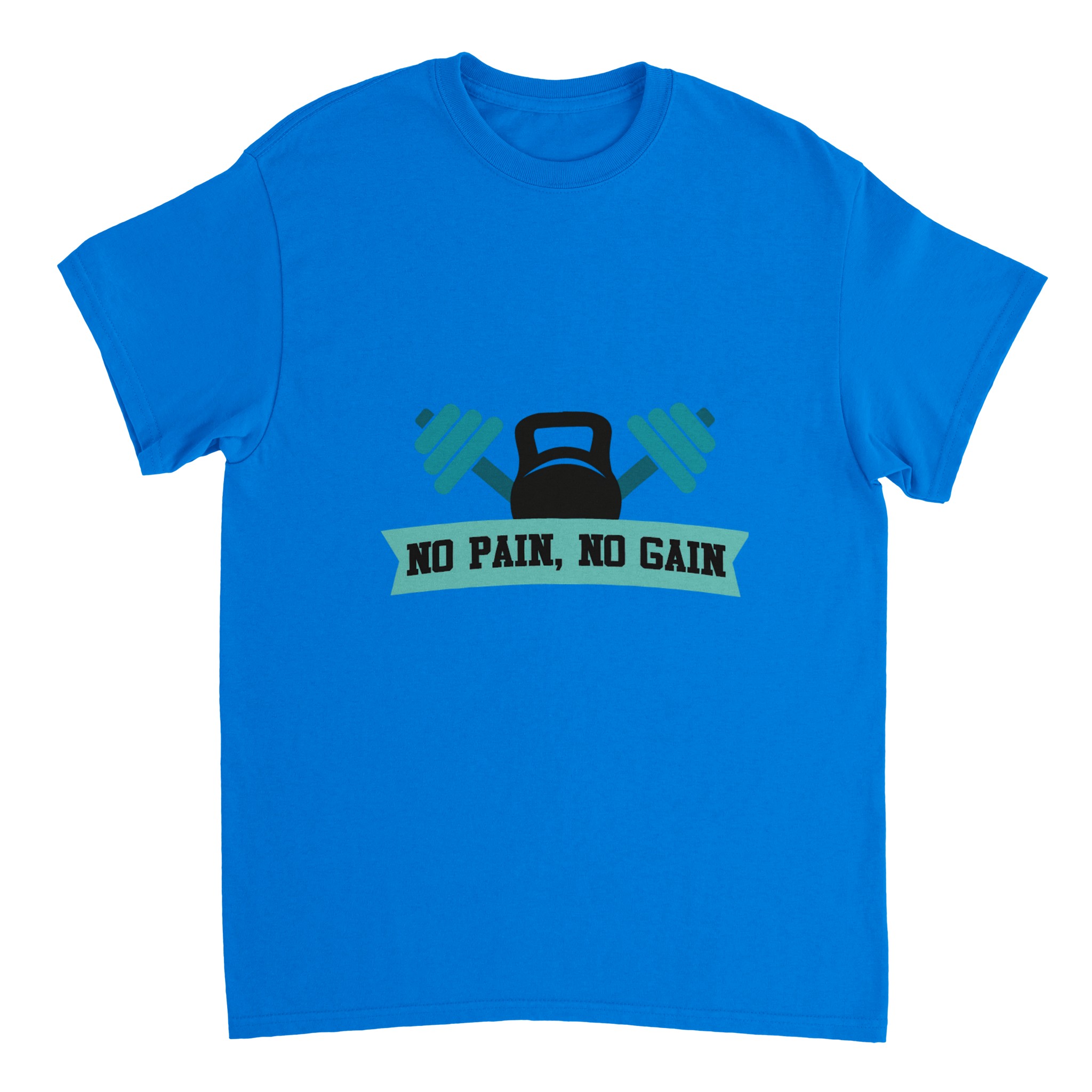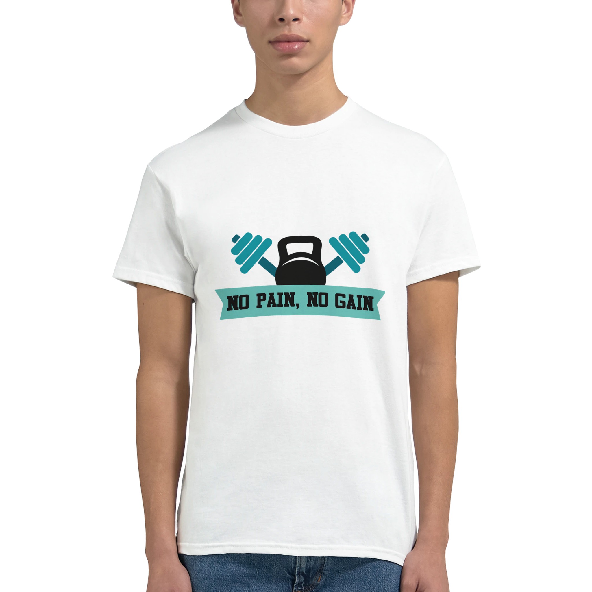 Klassisk Bomulls-T-shirt – ‘No Pain, No Gain’ Design för Träningsentusiaster, Unisex & Slitstark
