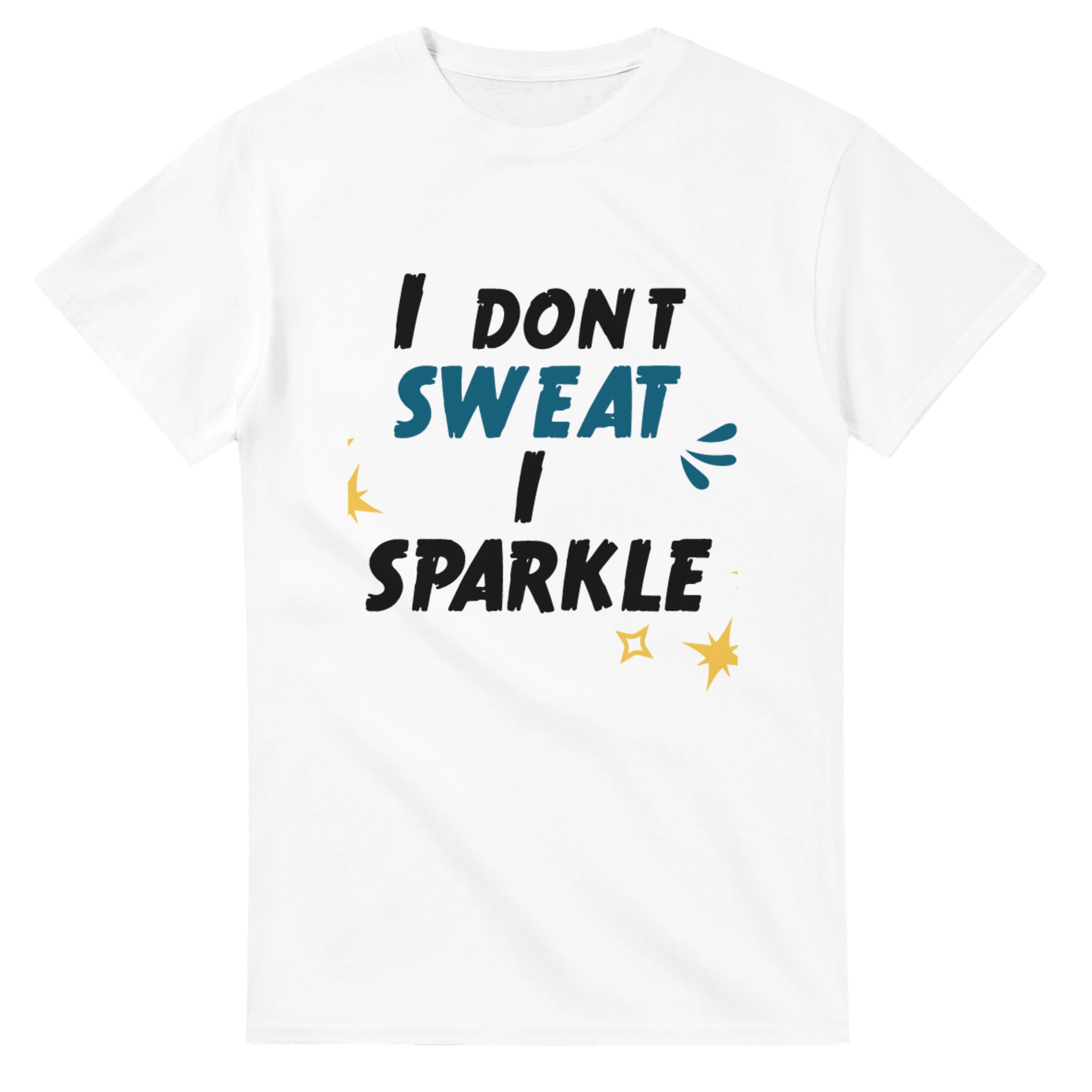 Glitter Glam T-shirt – ‘I Don’t Sweat, I Sparkle’ Design, Unisex, Flera Färger