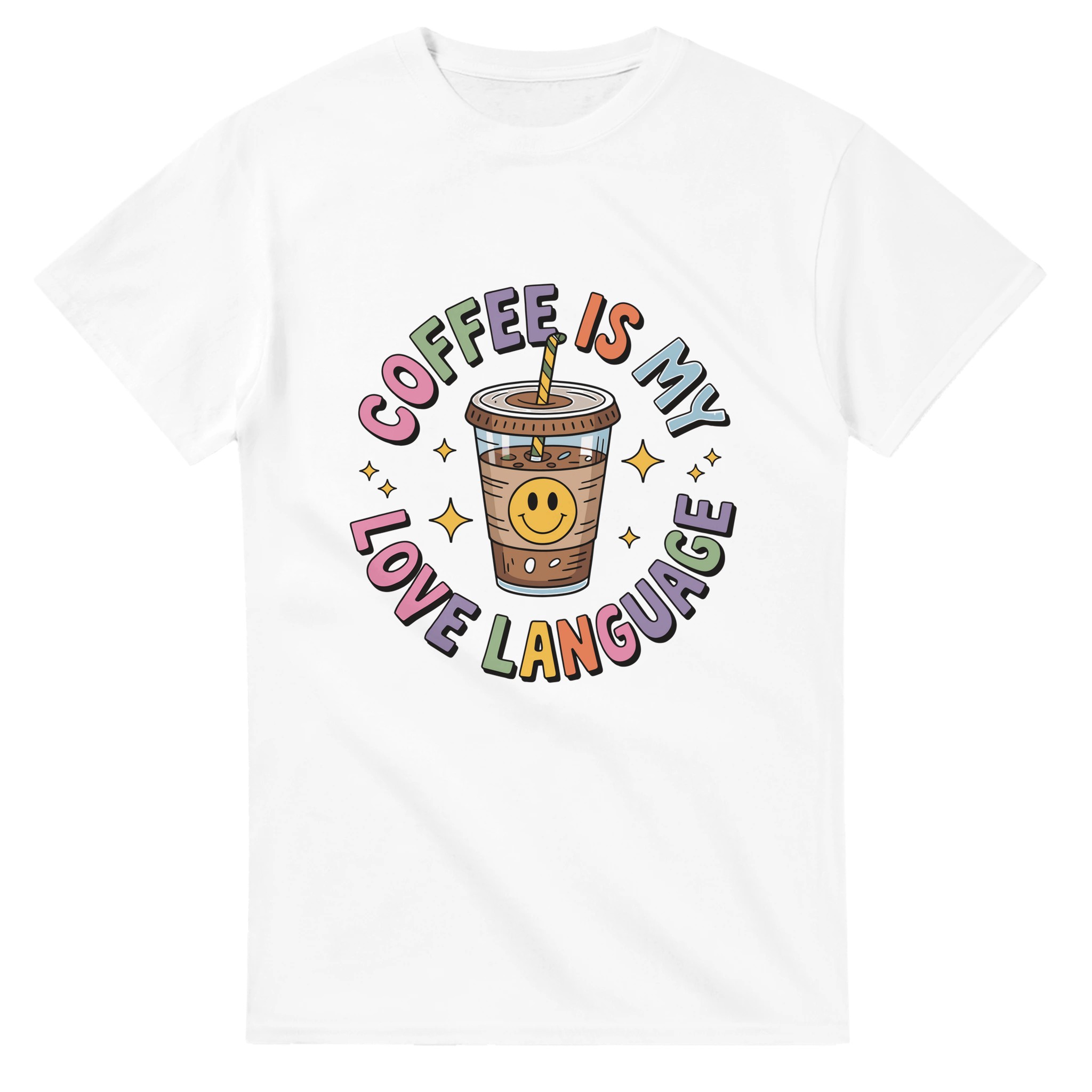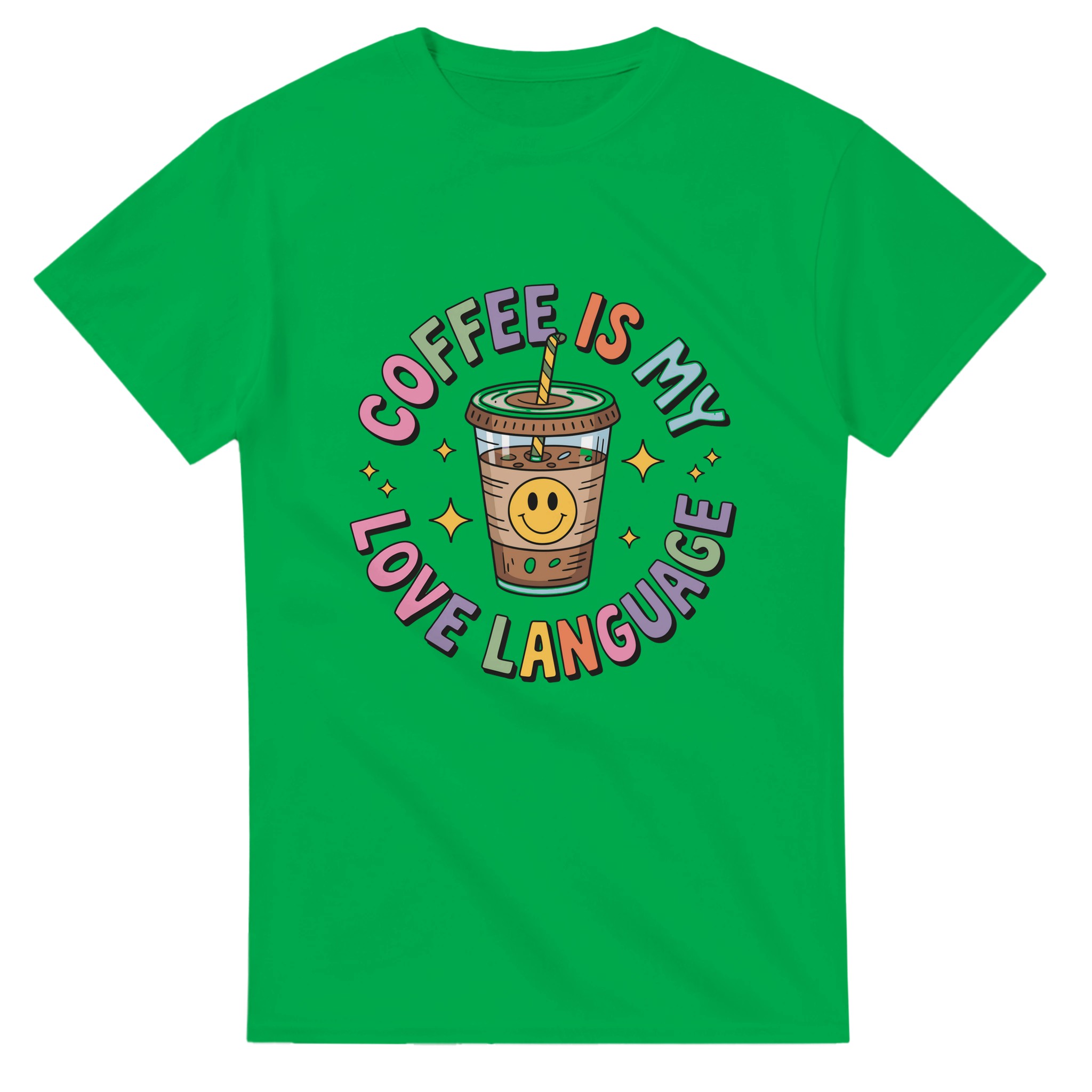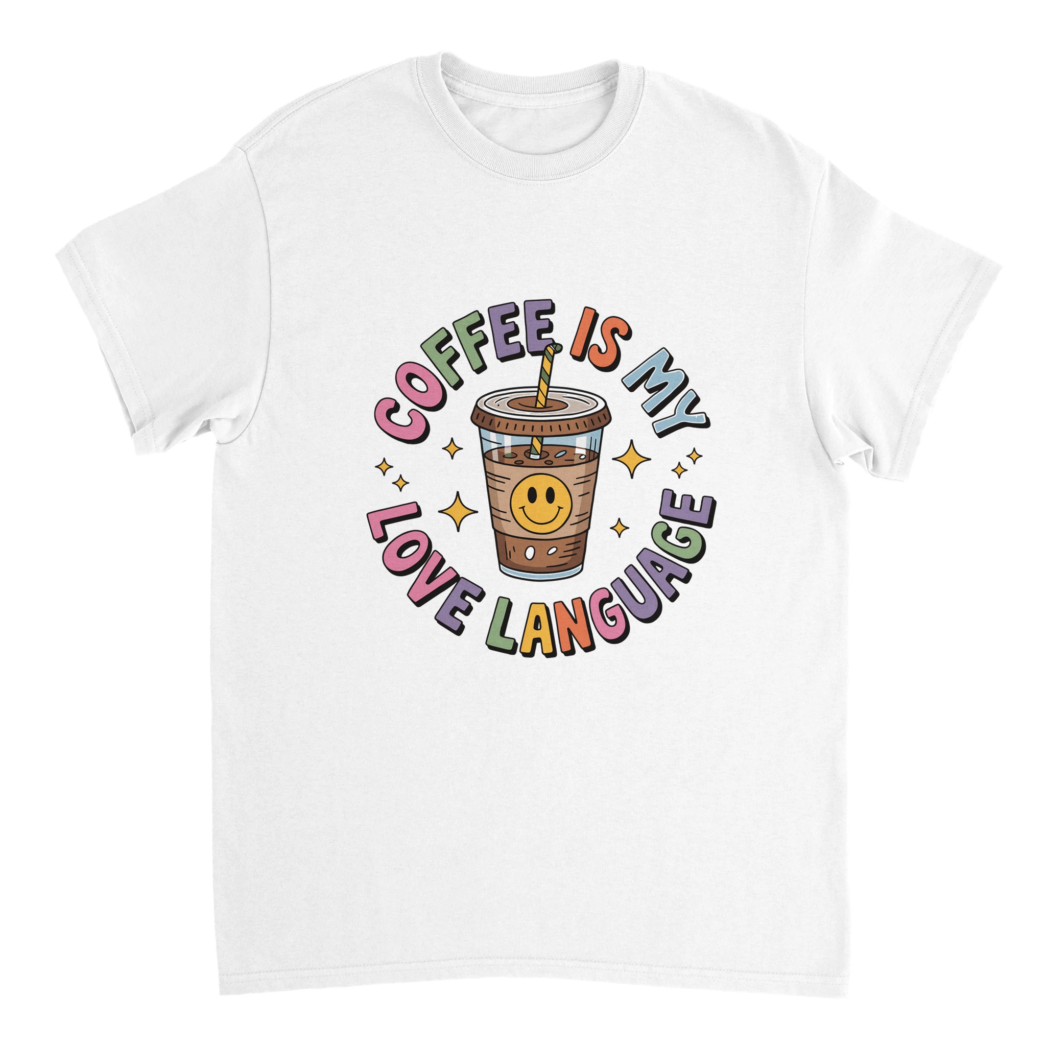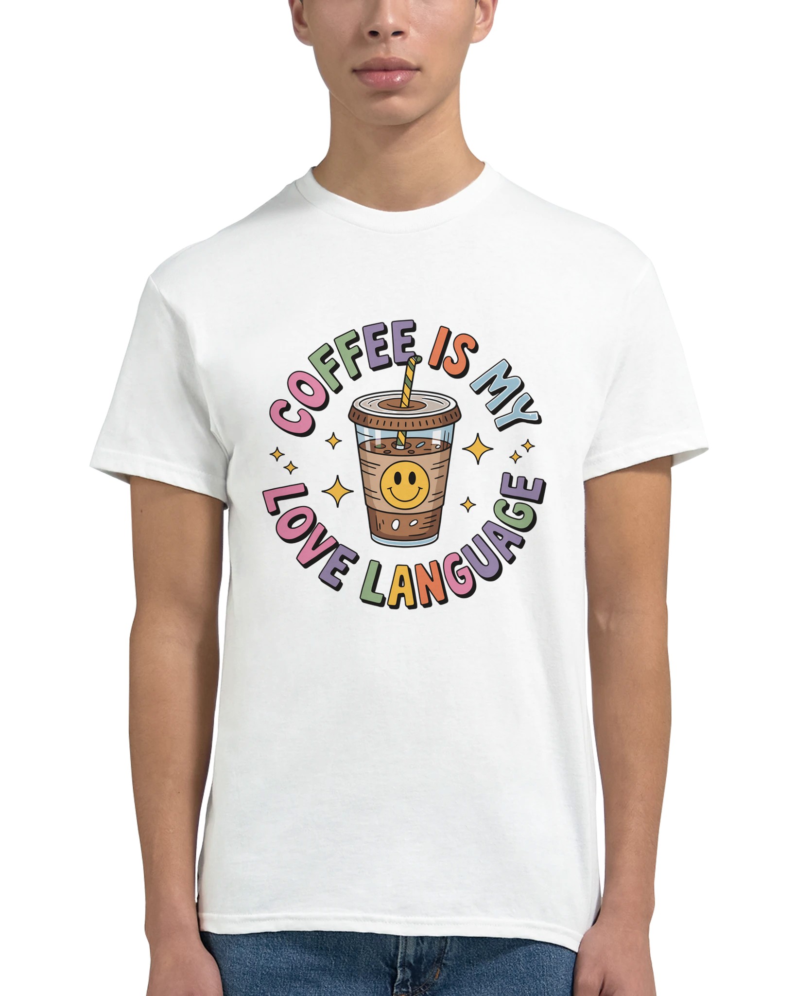 Klassisk “Coffee is My Love Language” Bomulls-T-shirt – Lekfull Design för Kaffeälskare i Din Favoritfärg