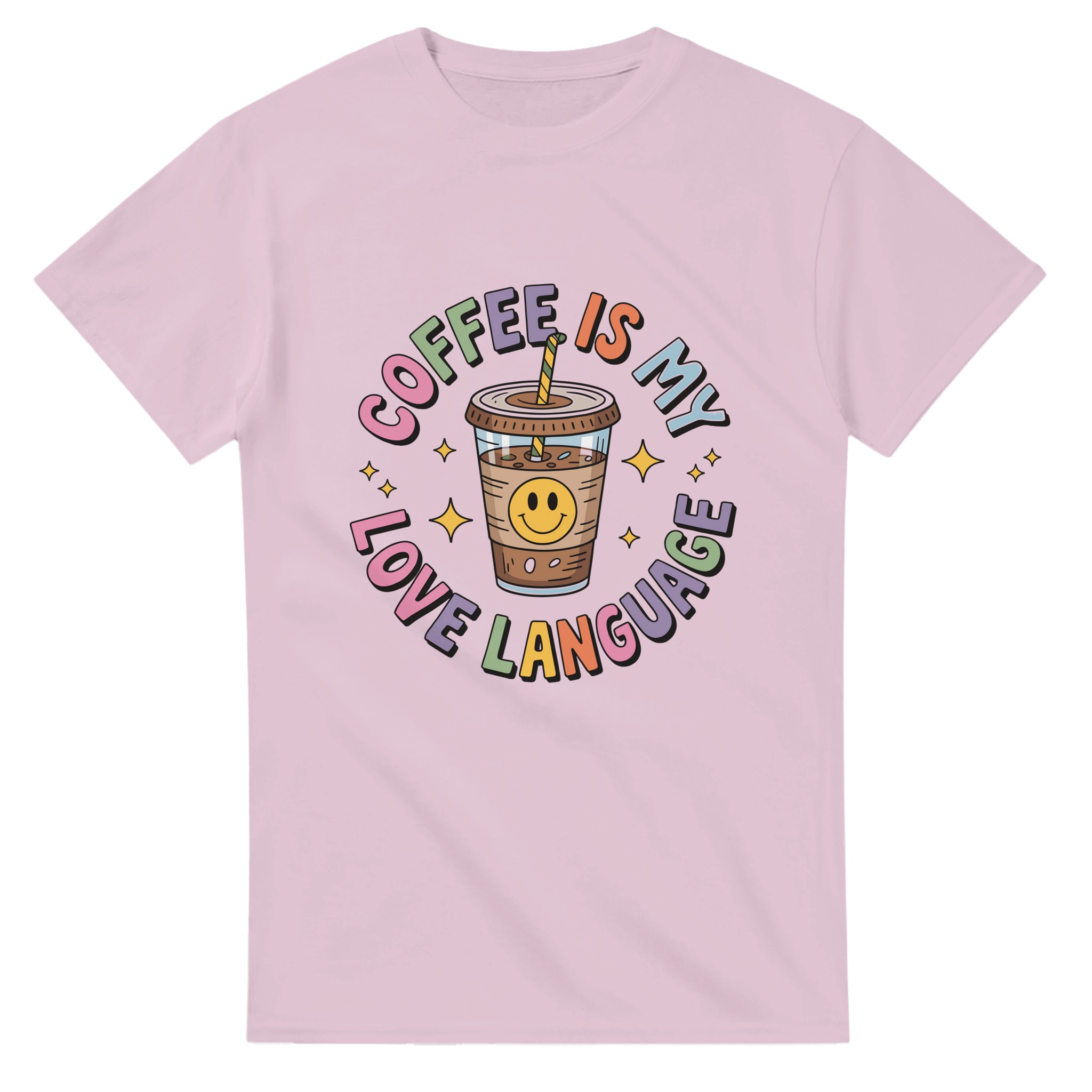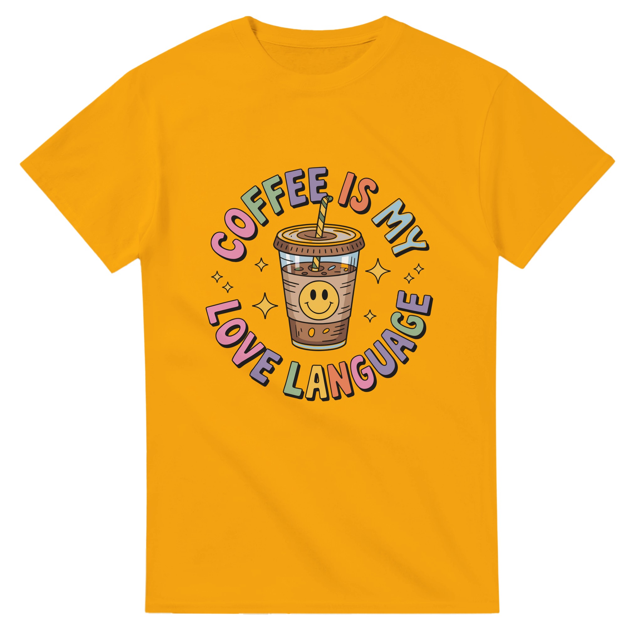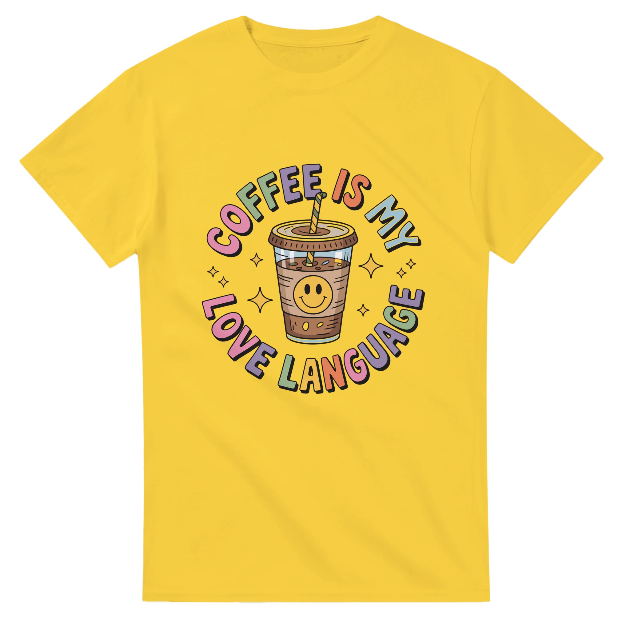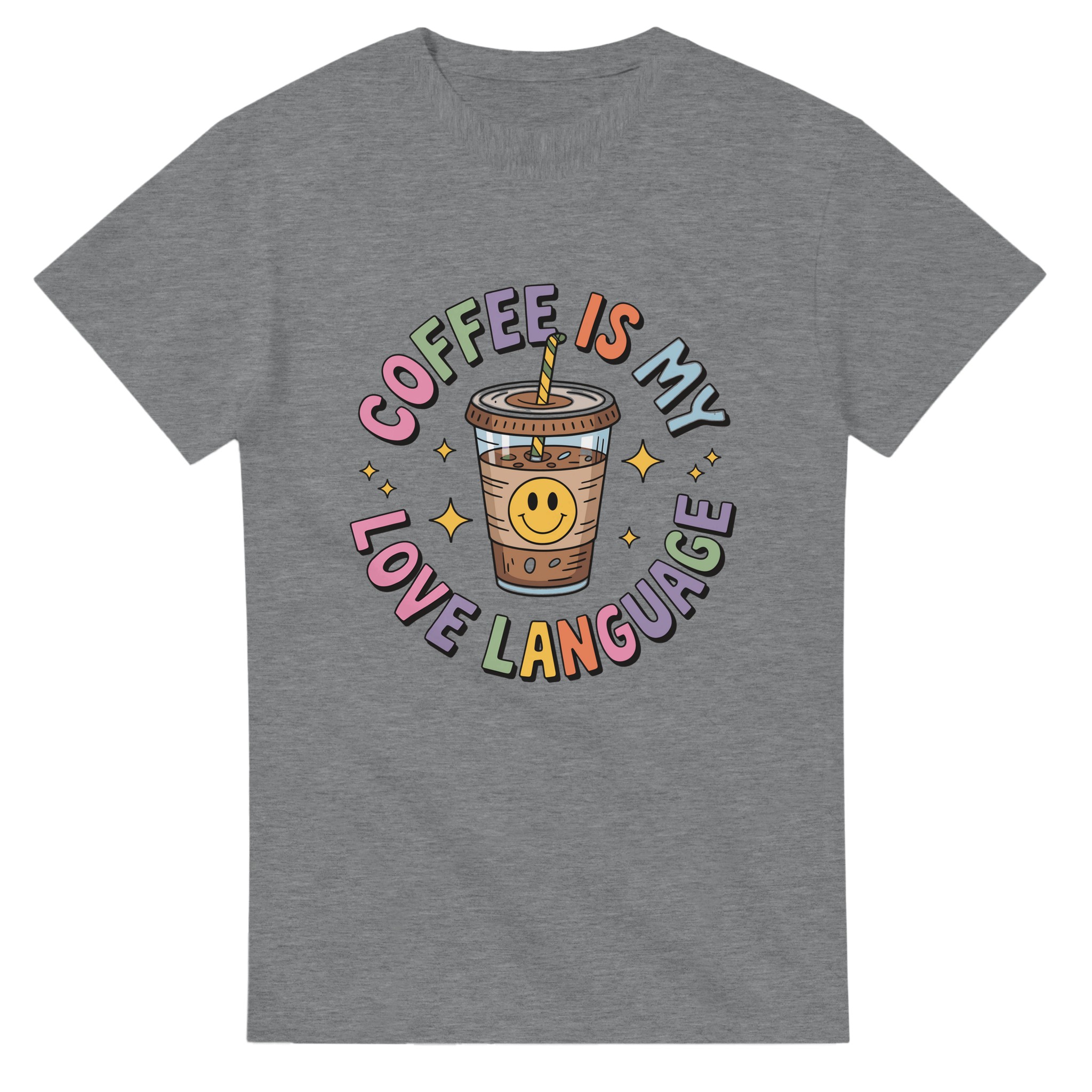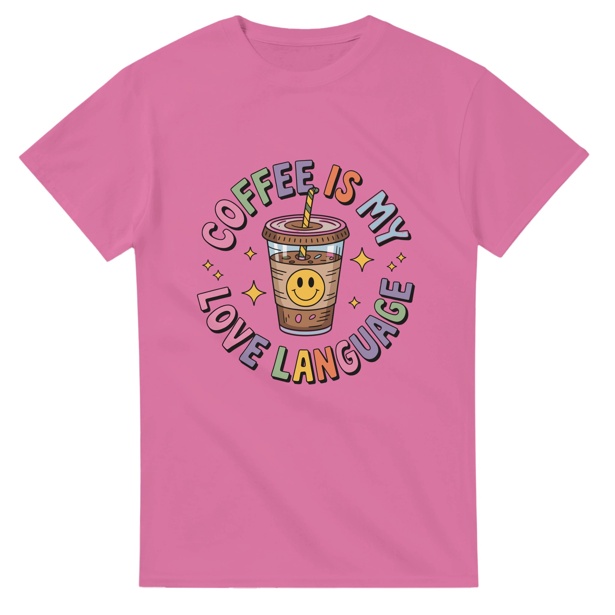 Klassisk “Coffee is My Love Language” Bomulls-T-shirt – Lekfull Design för Kaffeälskare i Din Favoritfärg