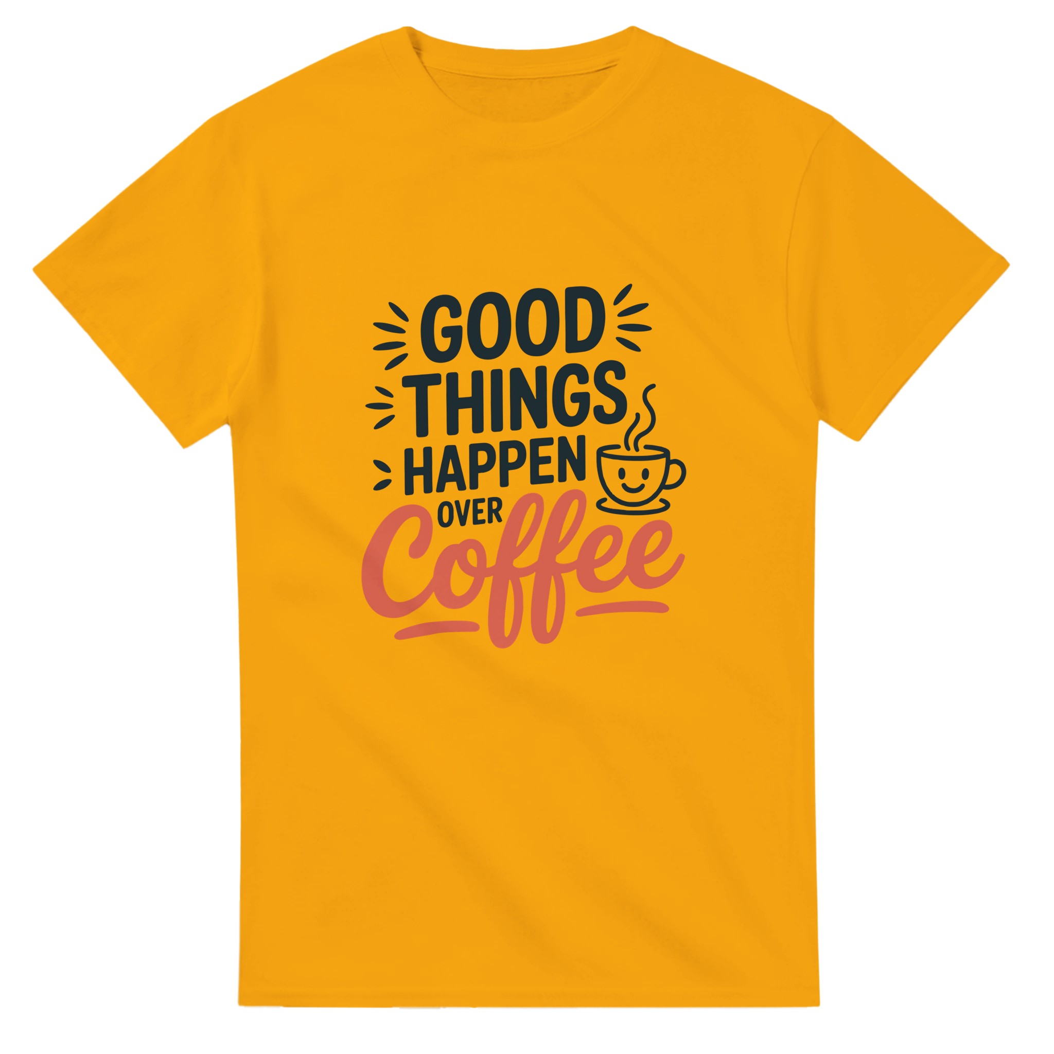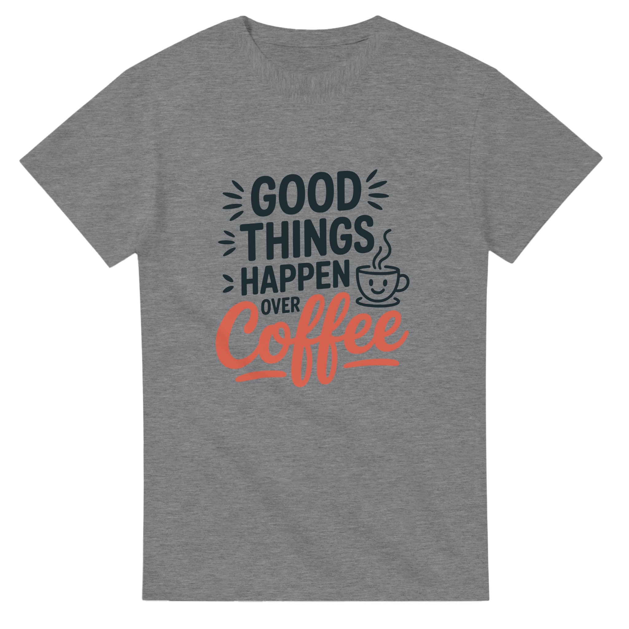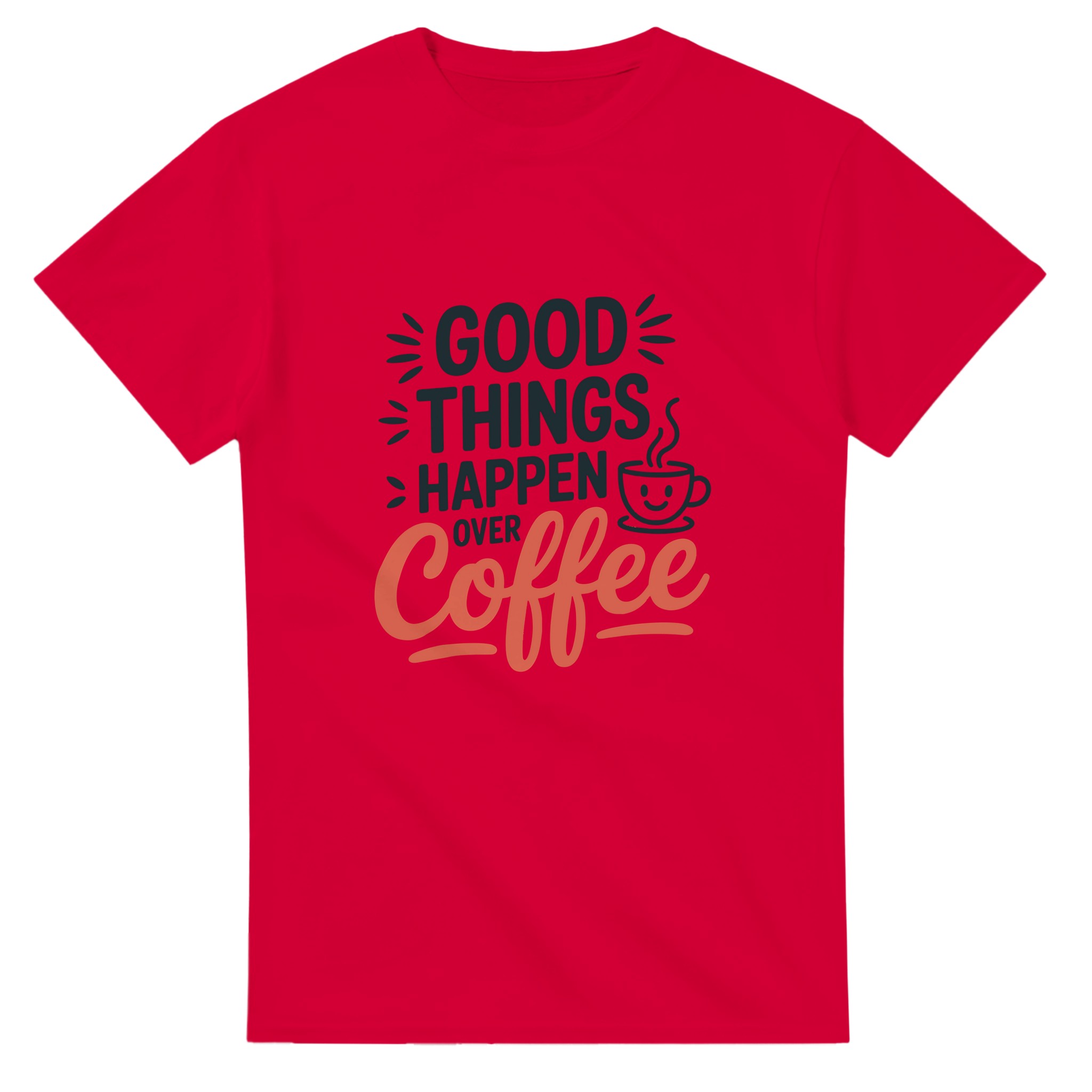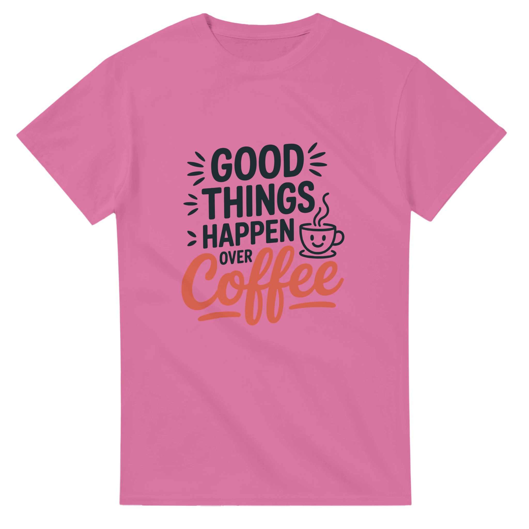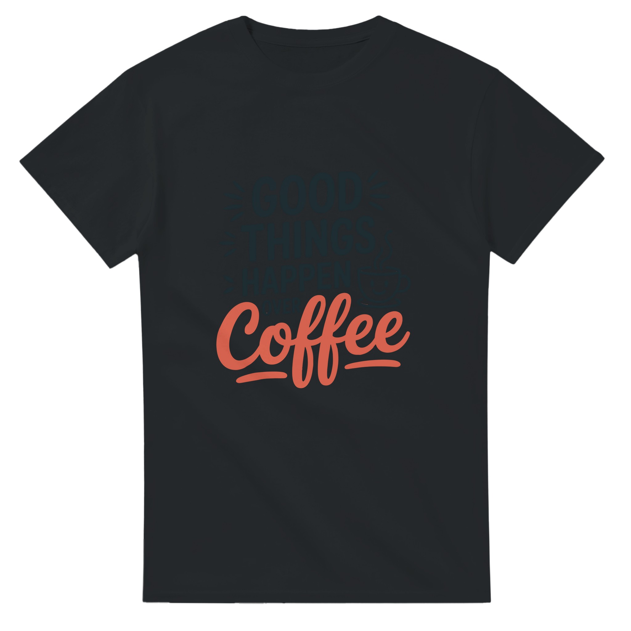 Klassisk Bomulls-T-shirt – ‘Good Things Happen Over Coffee’ Design, Unisex, Slitstark Vardagsstil
