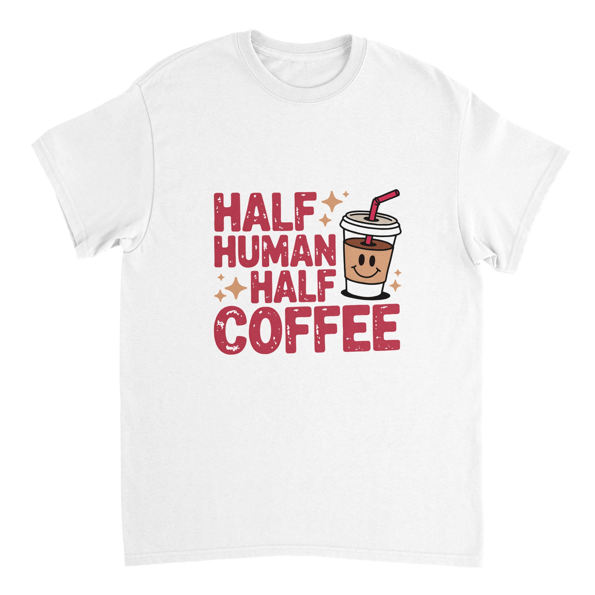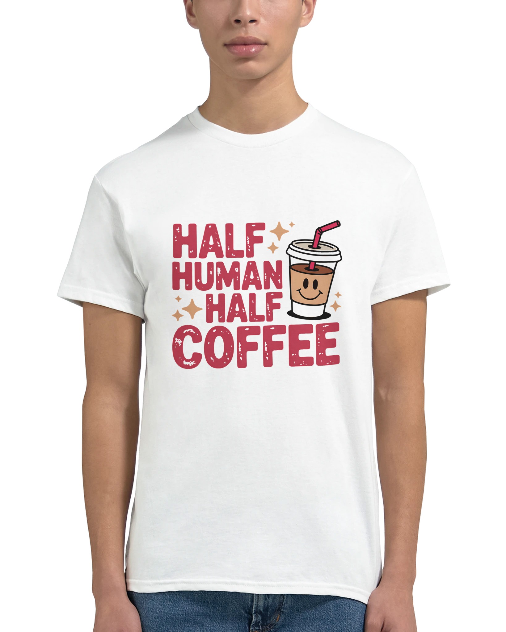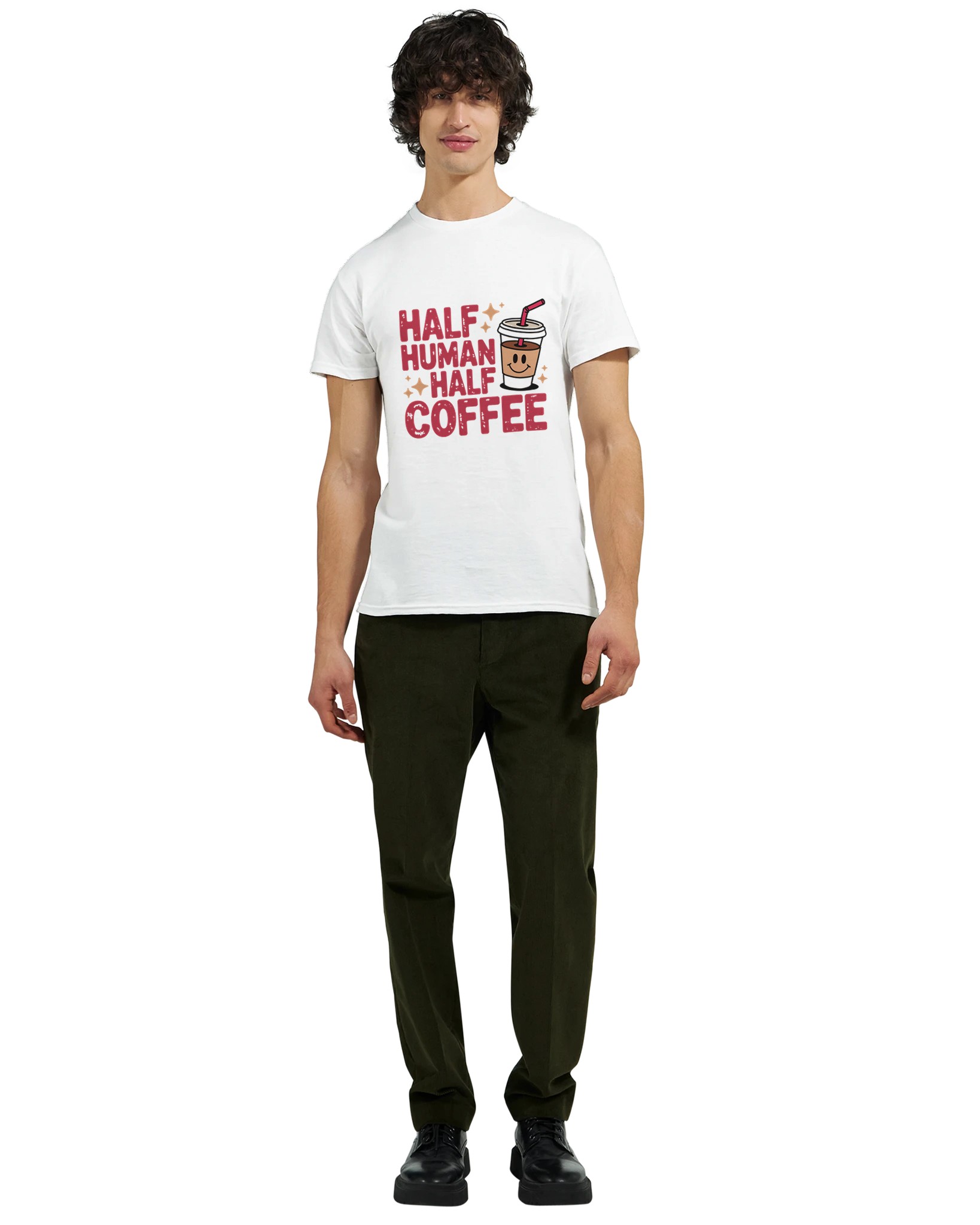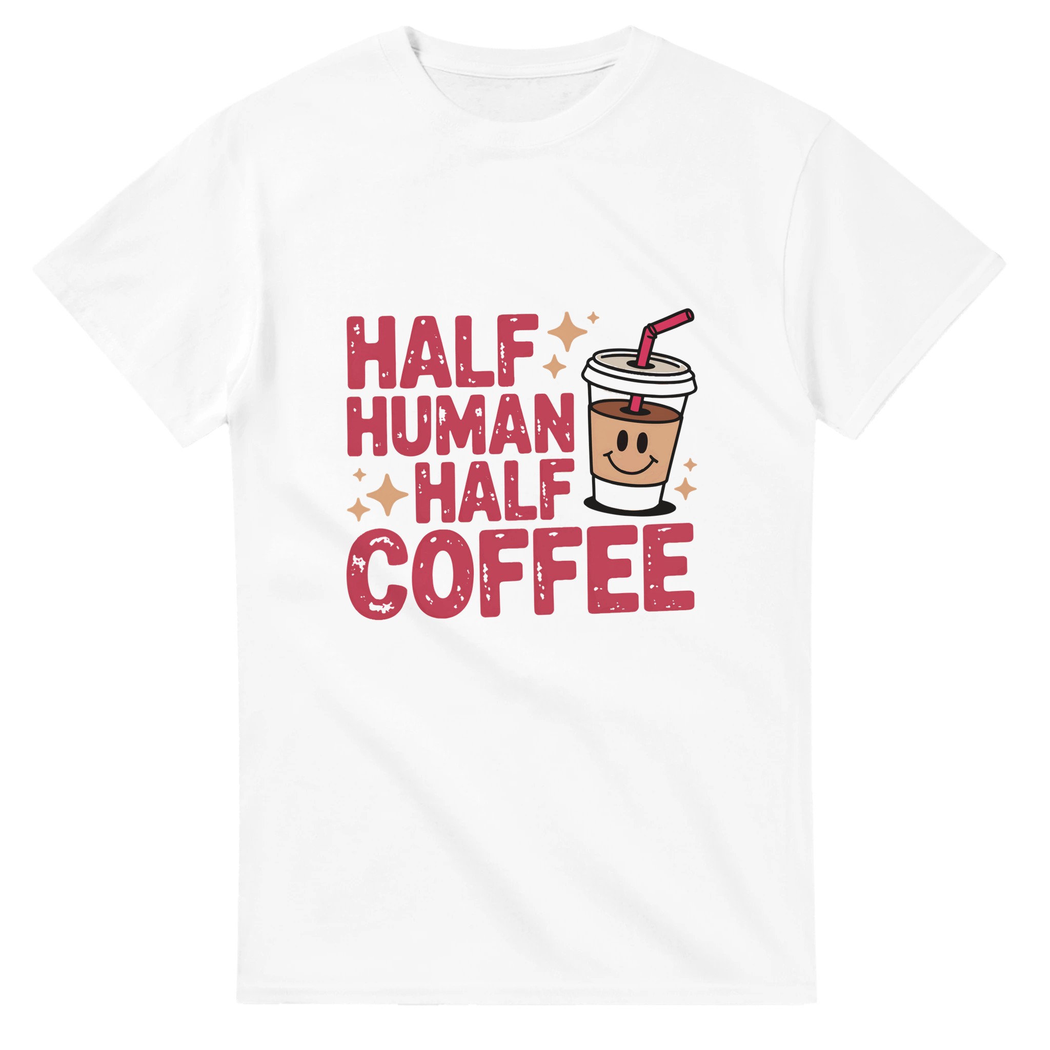Half Human, Half Coffee T-shirt – Rolig Design för Kaffeälskare, Unisex och Slitstark Vardagsfavorit