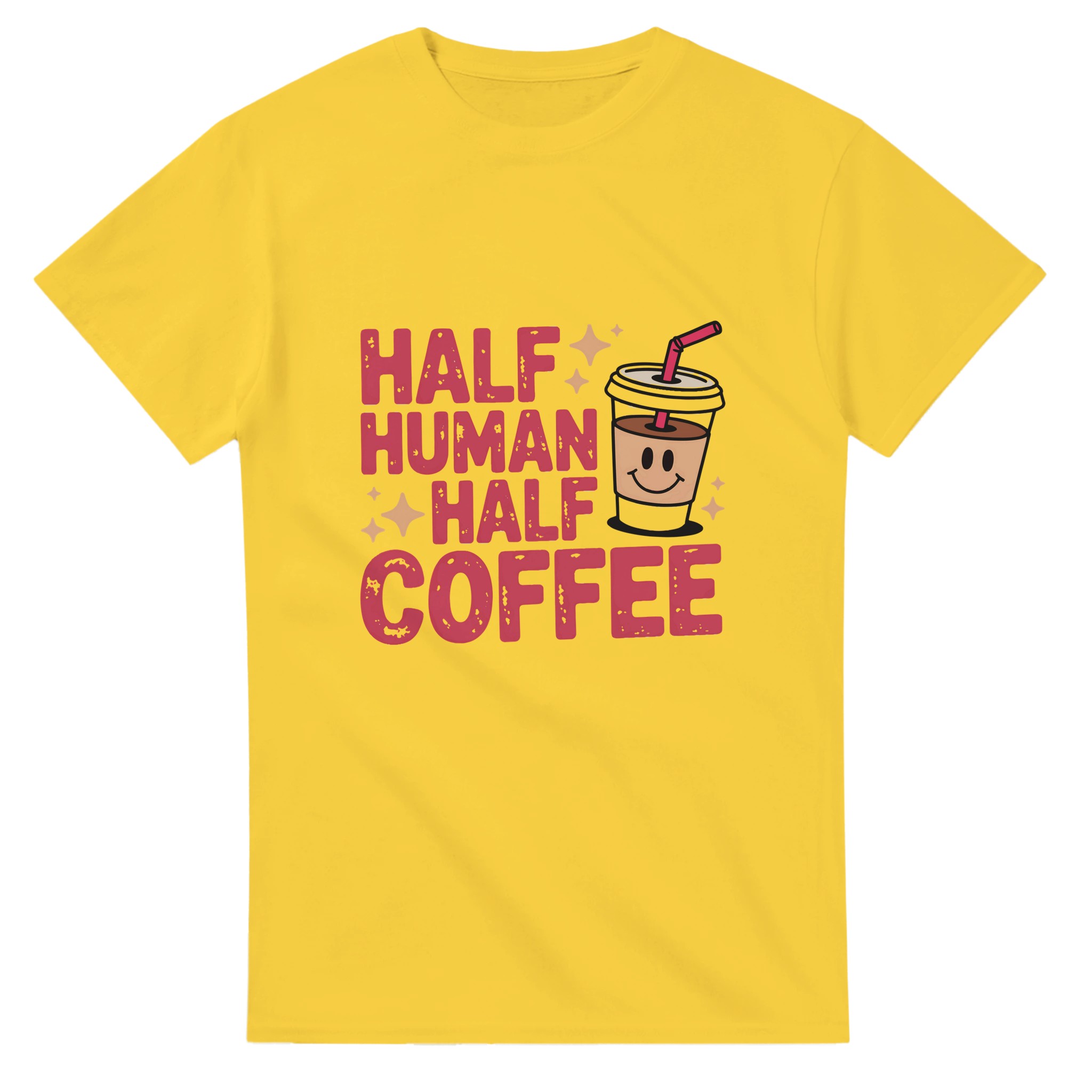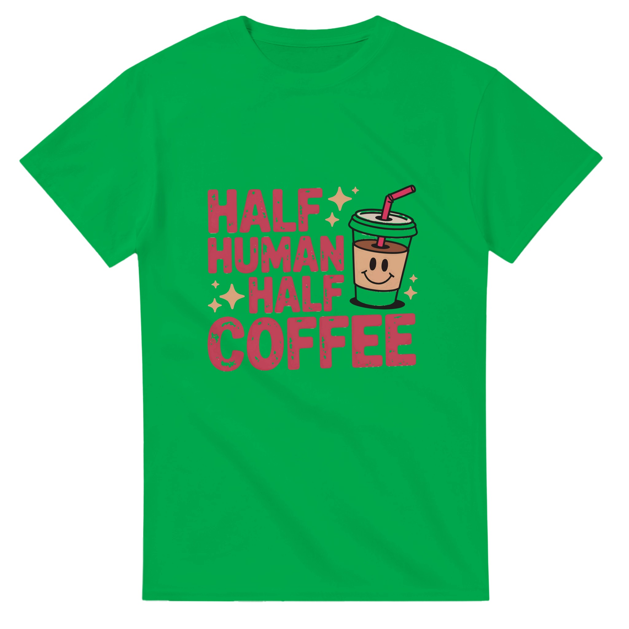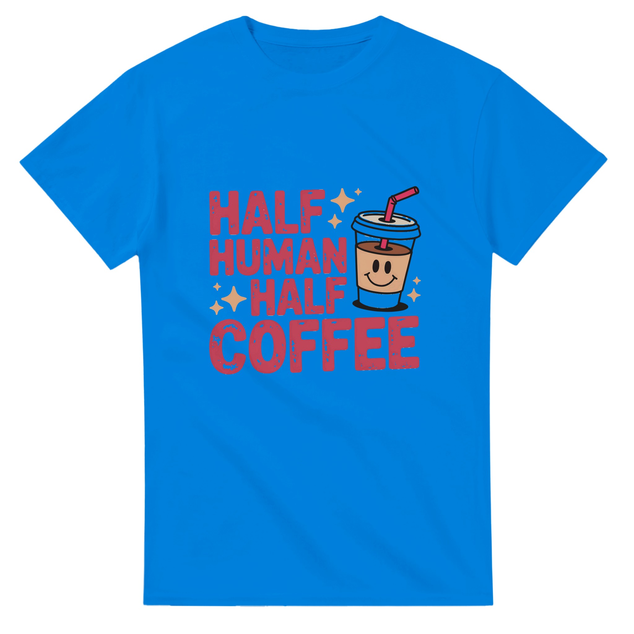 Half Human, Half Coffee T-shirt – Rolig Design för Kaffeälskare, Unisex och Slitstark Vardagsfavorit