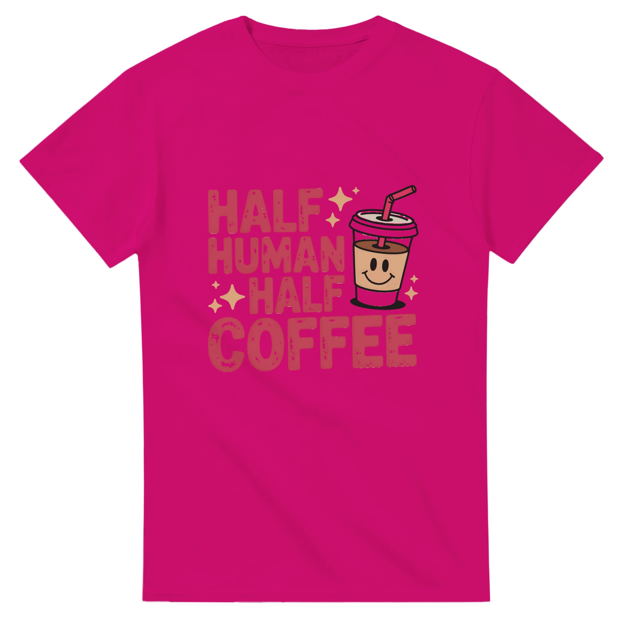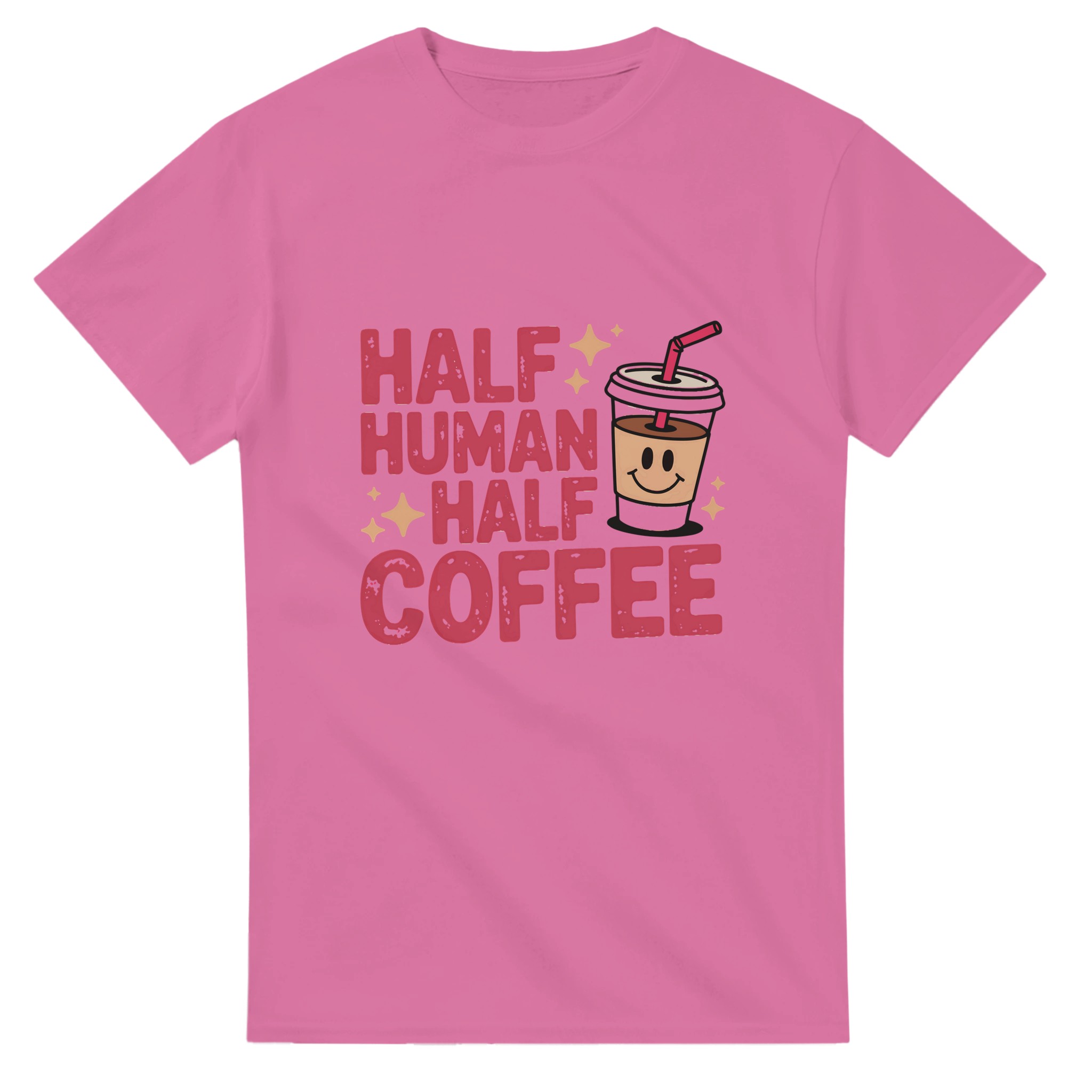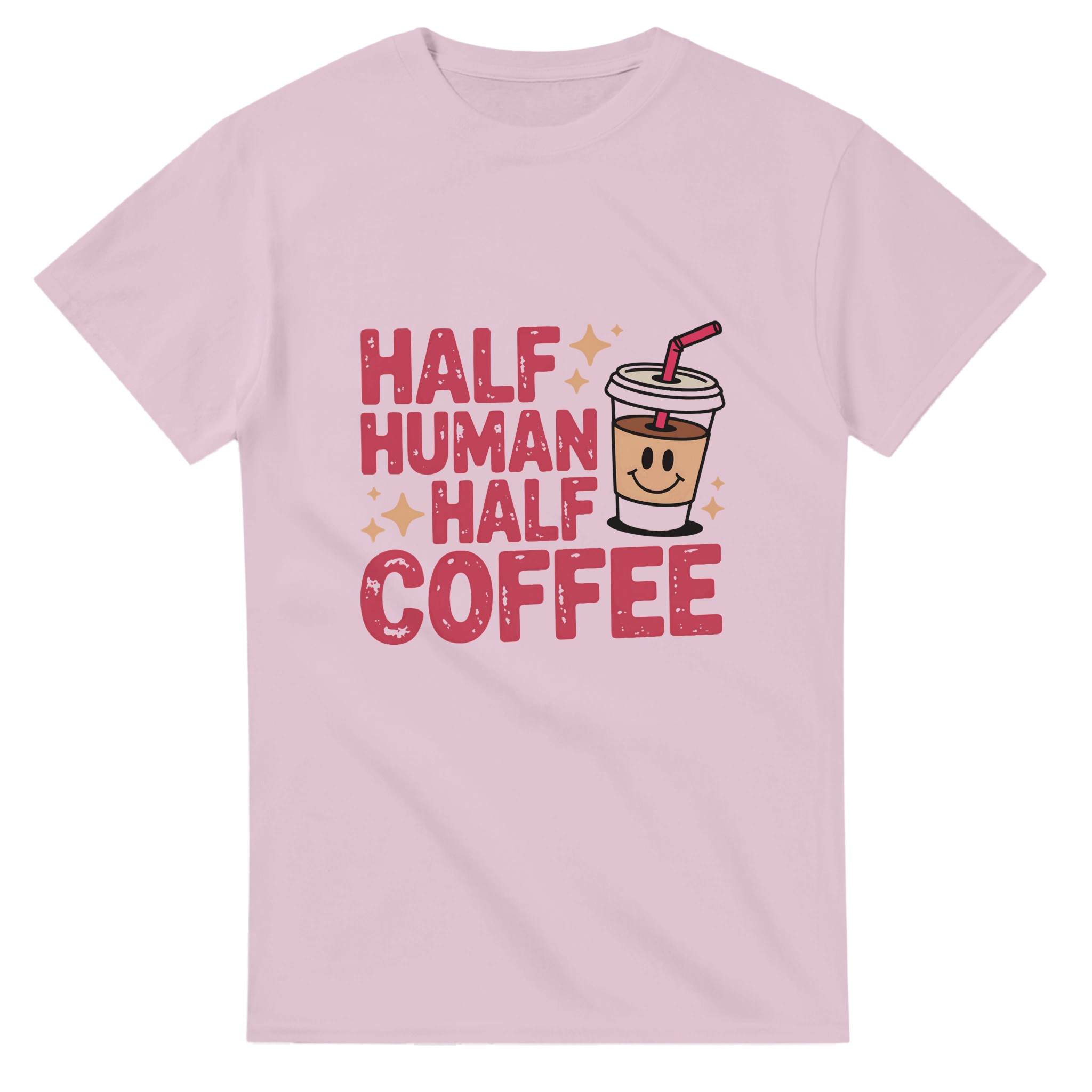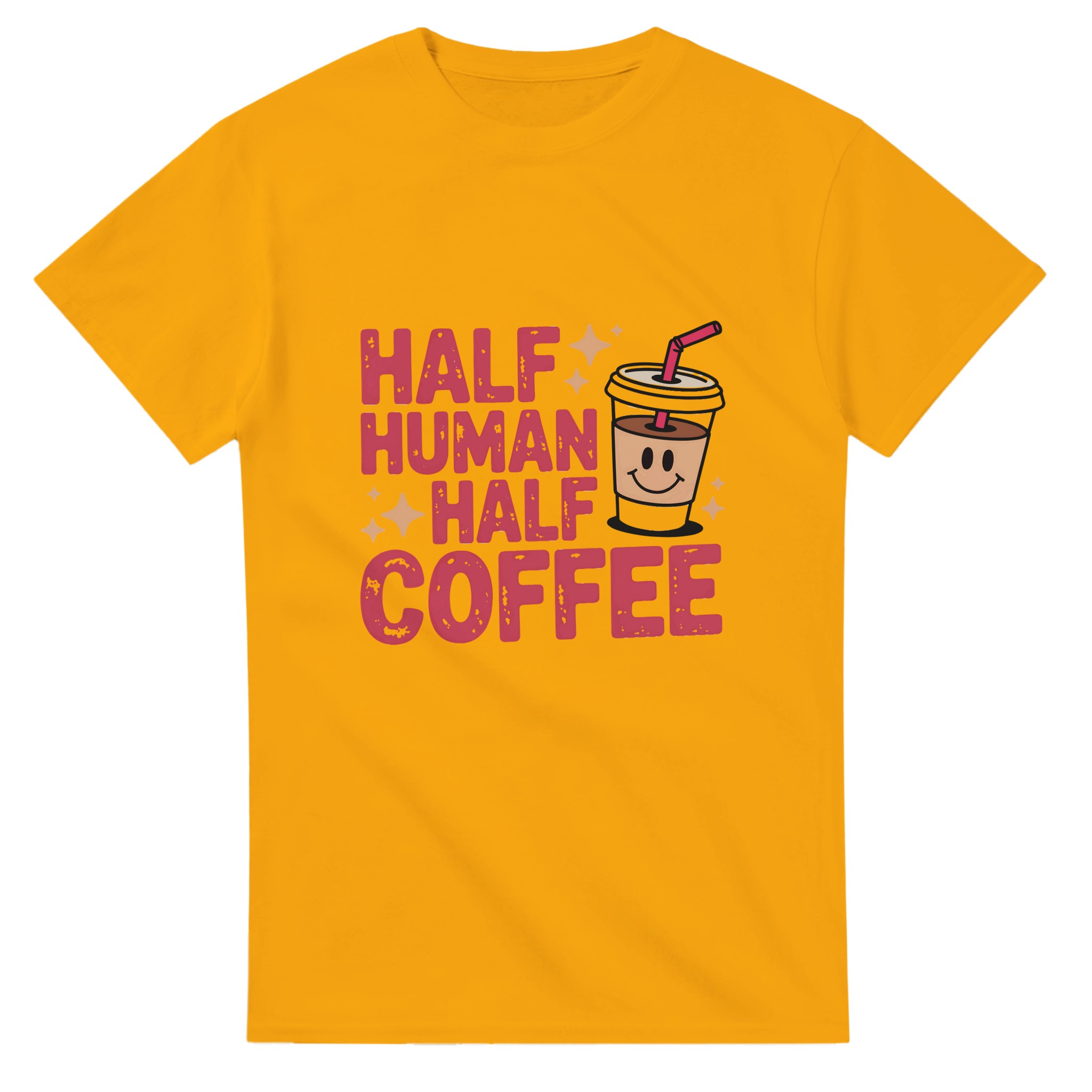 Half Human, Half Coffee T-shirt – Rolig Design för Kaffeälskare, Unisex och Slitstark Vardagsfavorit