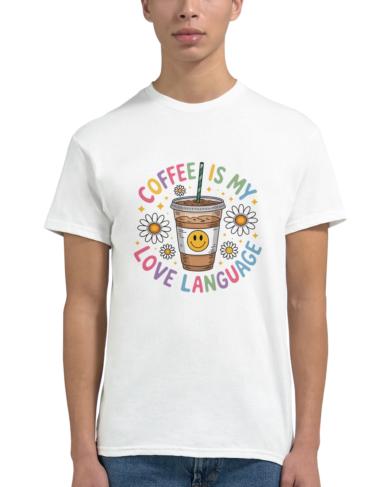 Klassisk Bomulls-T-shirt – “Coffee is My Love Language” – Färgstark, Trendig & Bekväm Design